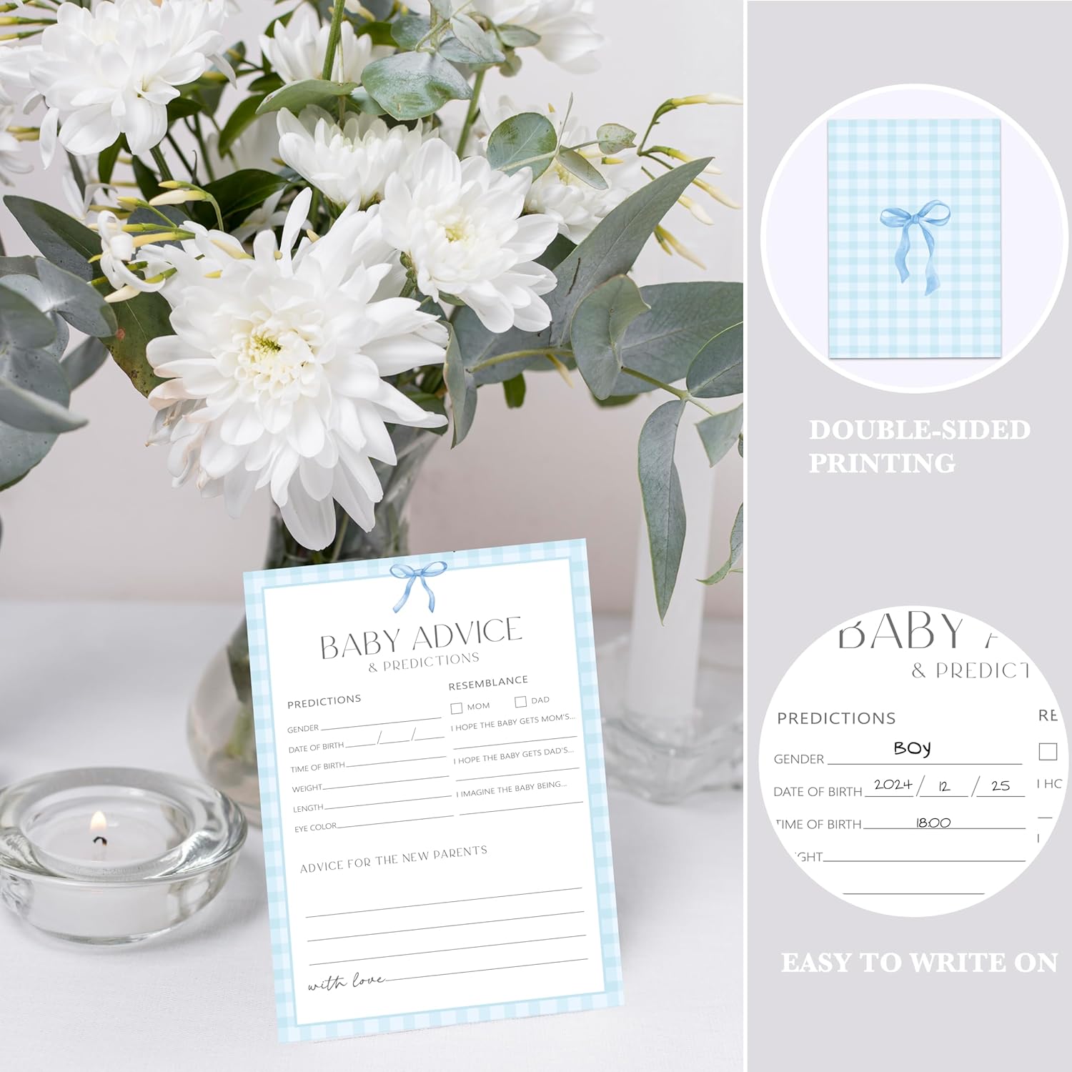 Advice For New Parents Baby Shower, Baby Predictions & Advice Cards For Baby Shower Games Activities, Wishes for Baby, 25 Double-Sided Thick Cards – Blue Bow A01