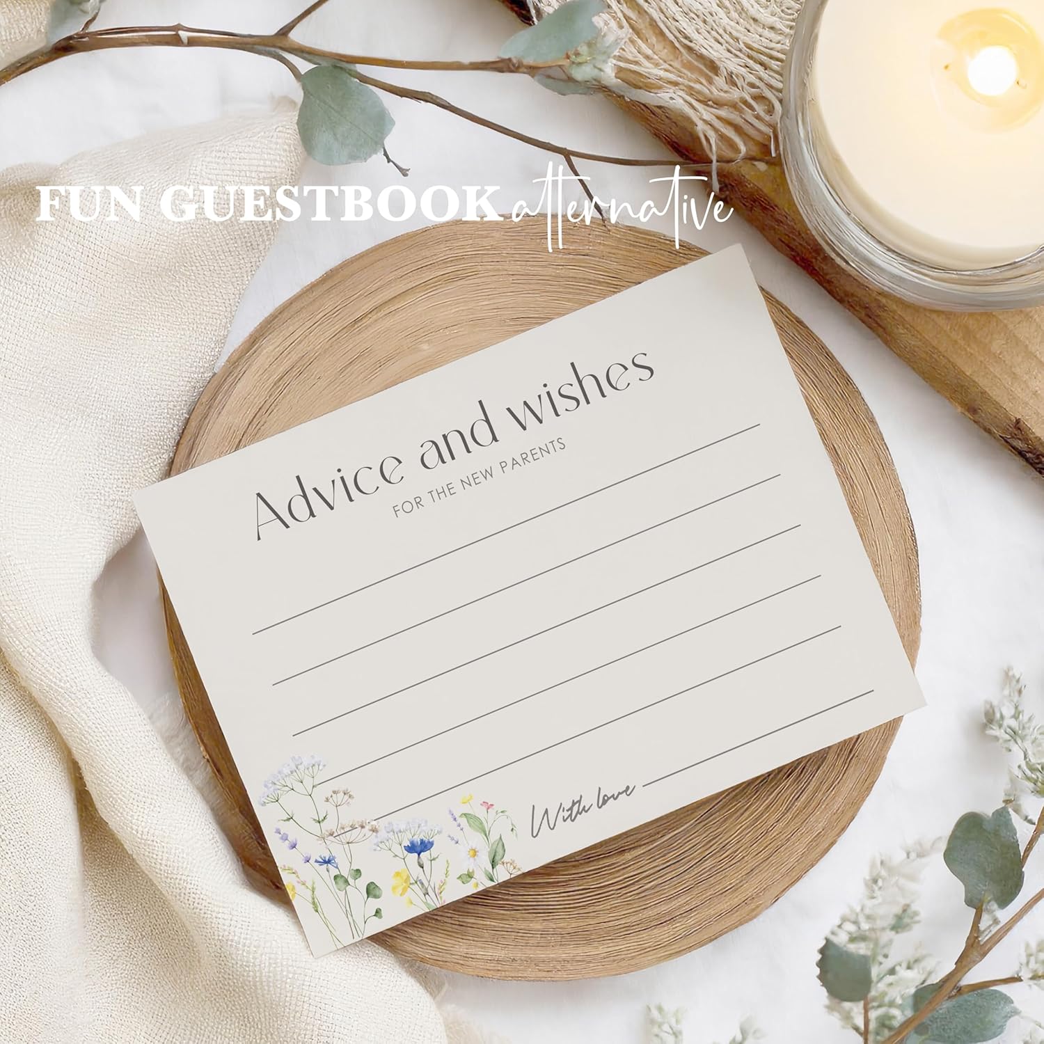 Advice For New Parents Baby Shower, Baby Predictions & Advice Cards For Baby Shower Games Activities, Wishes for Baby, 25 Double-Sided Thick Cards – Flower A08