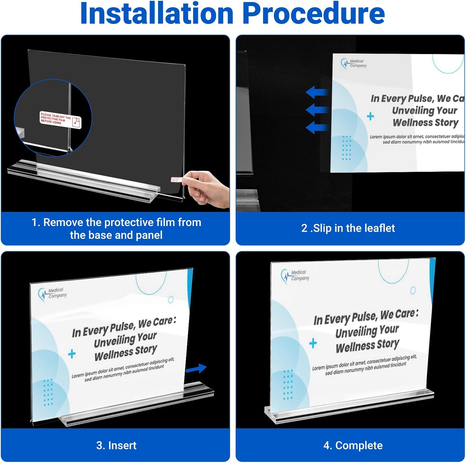 - Protective Film for Scratch-Free Surface: Each sign holder comes with a protective film on both sides to safeguard against scratches during transportation and handling. Before use, remember to remove the protective film on both sides for a scratch-free surface.