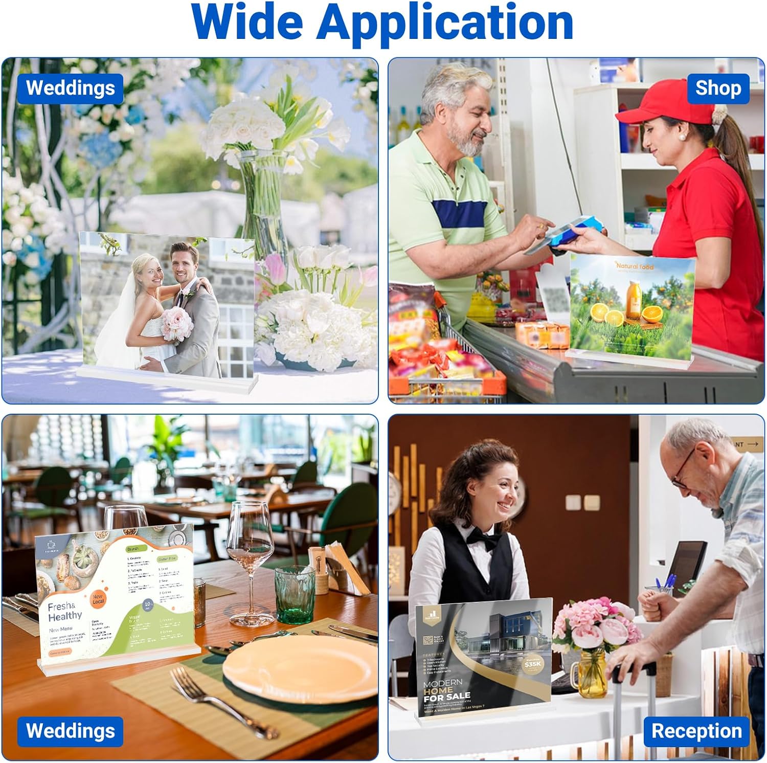- 6 Pack Acrylic Sign Holders: Perfect for bulk purchases or multi-location displays. Can use for holding menus, price lists, promotional posters, or event notices in high-traffic areas. The durable design ensures long-lasting performance in retail stores, offices, and hospitality venues.