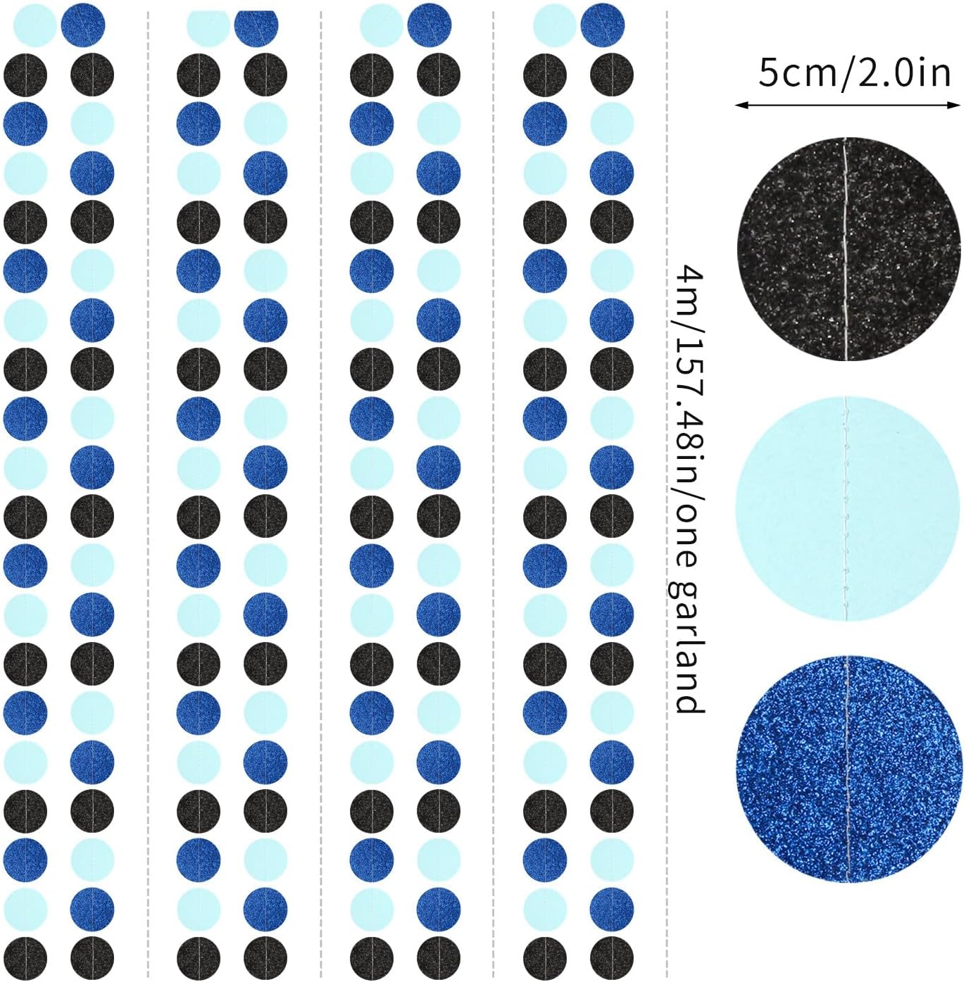 - PACKAGE CONTAINS: This set has four navy blue black circle paper garland,the length of each strand is 4 meters/13 feet, the total length is 16 meters/52 feet.The size is 2IN.