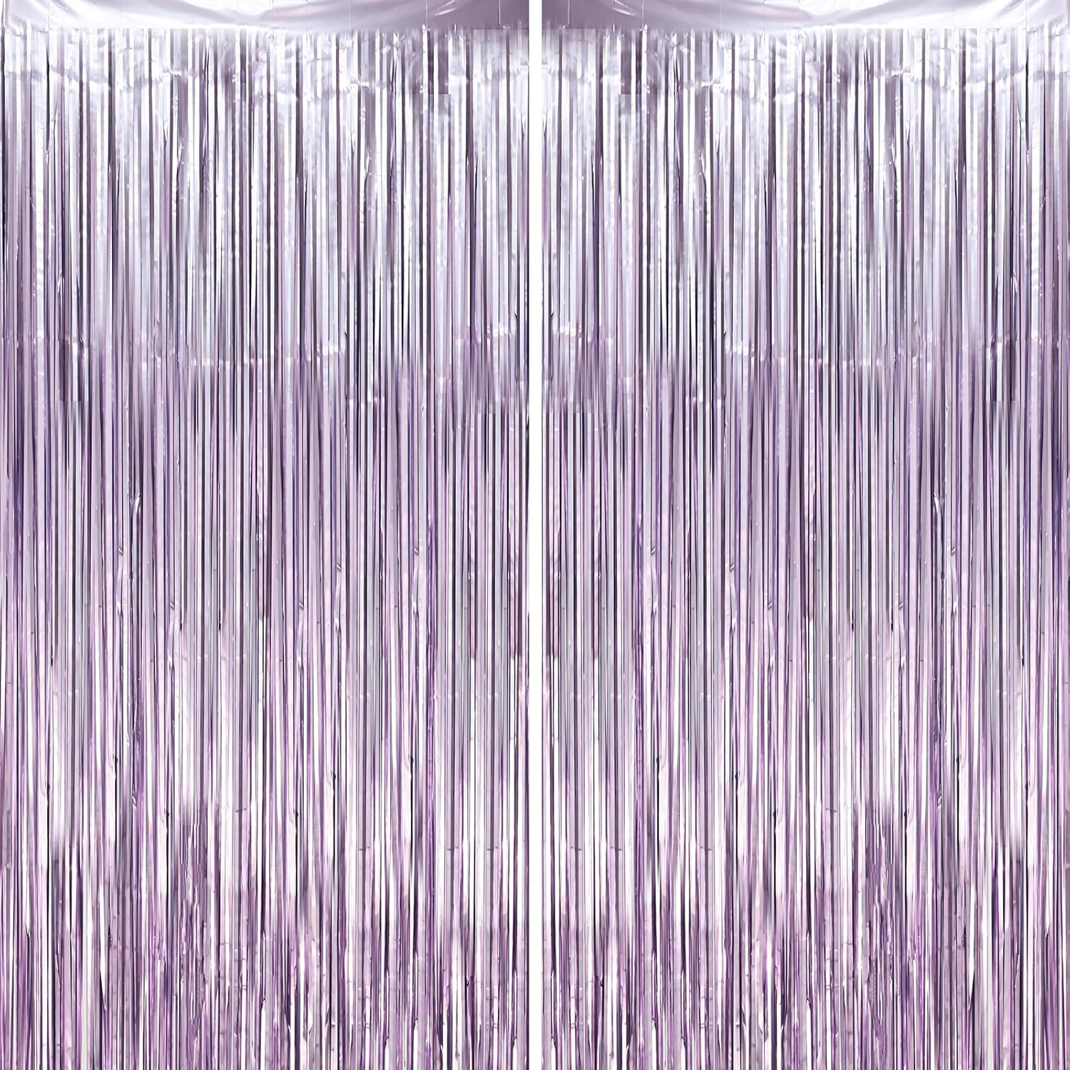 2 Pack Light Purple Foil Fringe Backdrop Curtains, Tinsel Streamers Party Decorations, Fringe Backdrop, Door Shimmer for Baby Shower or Birthday Party