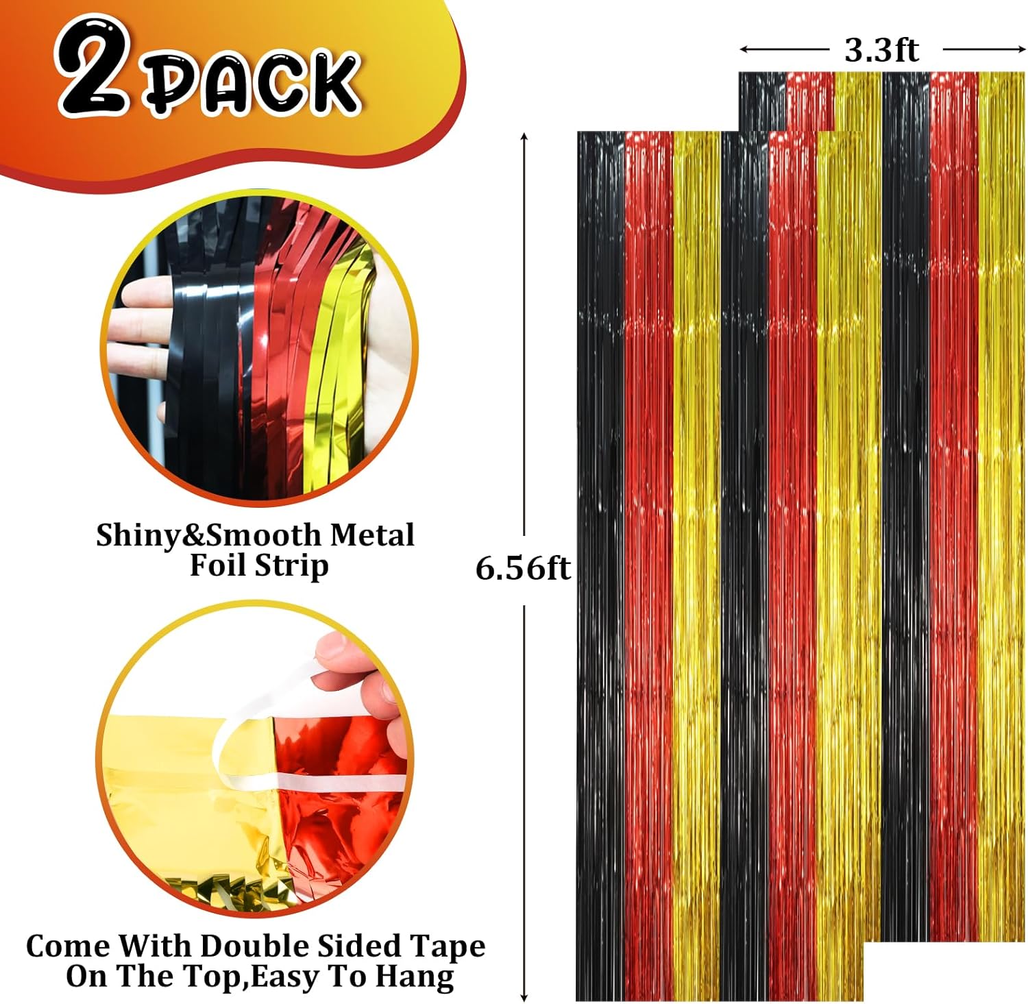 - Stunning Decorative Set: You'll receive 2 pcs red black and gold foil fringe backdrop curtains, each measuring 3.28 ft (wide)Γ6.56 ft (drop). Enough length foil fringe curtains backdrops are perfect for the door or wall to create an impressive decoration