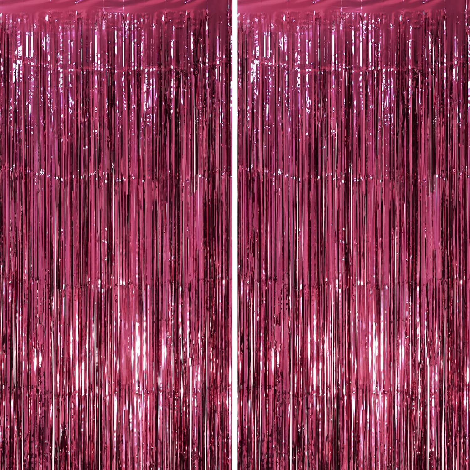 2 Pack Burgundy Foil Fringe Backdrop Curtains, Tinsel Streamers Party Decorations, Fringe Backdrop, Door Shimmer for Retro Theme Party