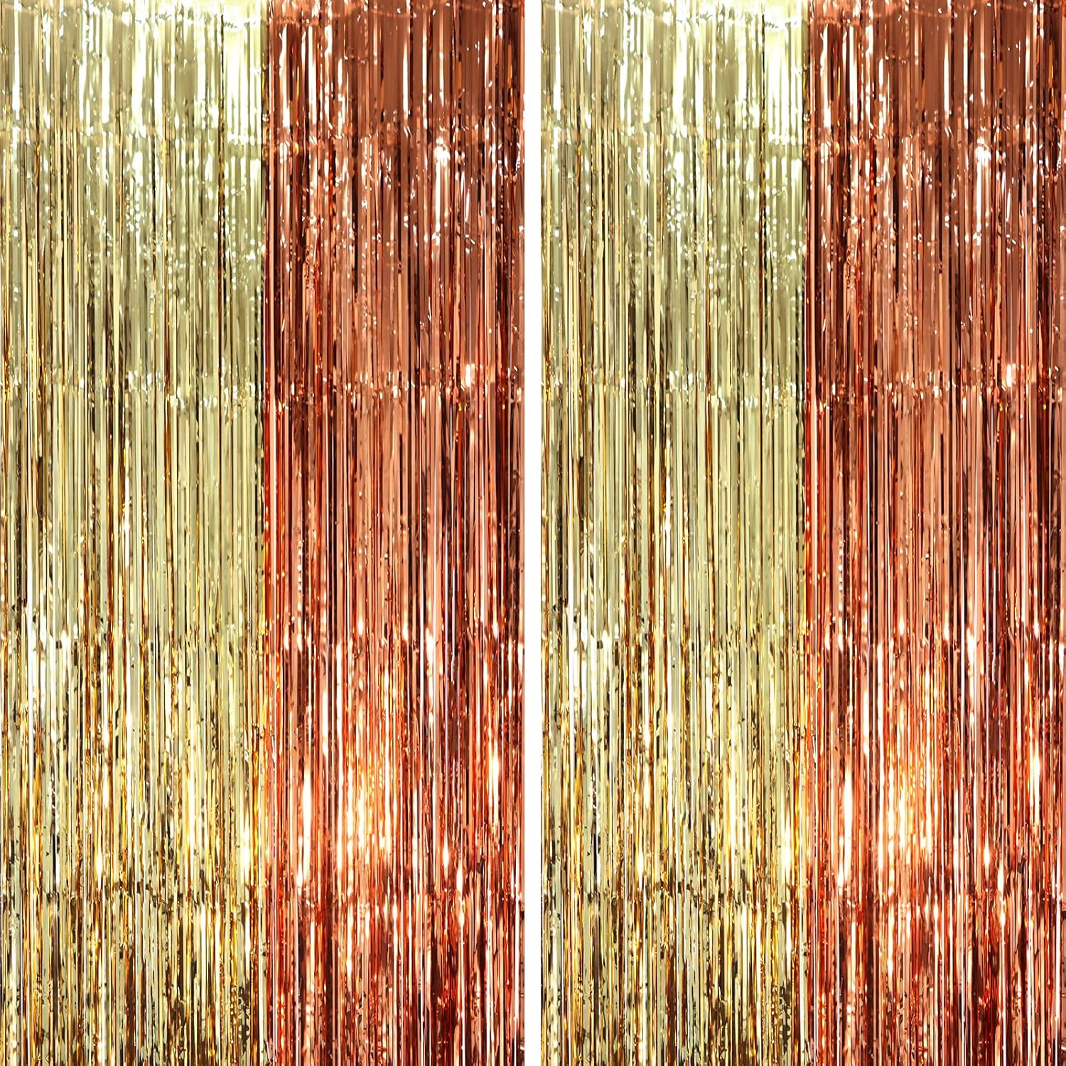 - Stunning Decorative Set: You'll receive 2pcs rose gold and champion foil fringe backdrop curtains, each measuring 3.28 ft (wide)Γ6.56 ft (drop). Enough length foil fringe curtains backdrops are perfect for the door or wall to create an impressive decoration