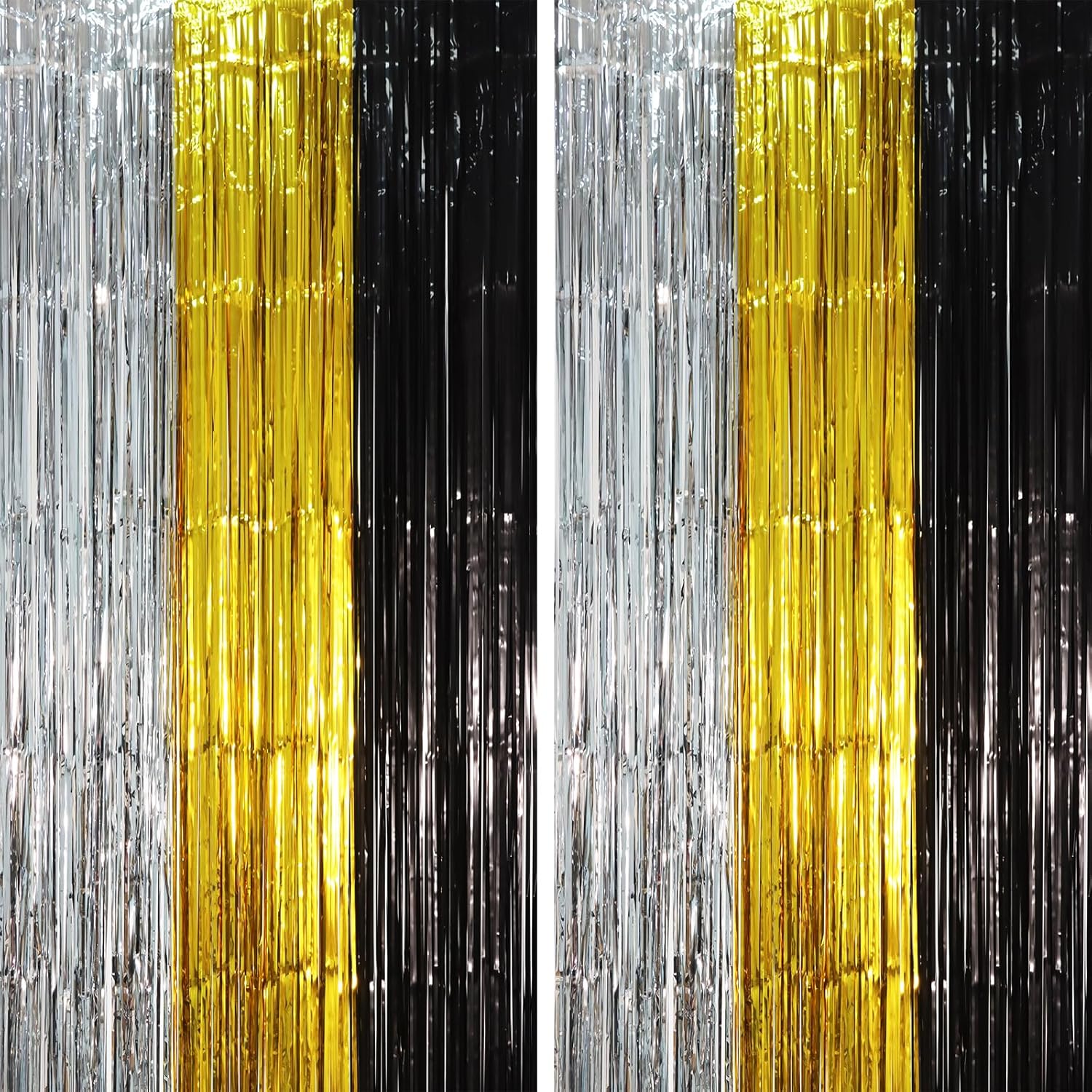 - Stunning Decorative Set: You'll receive 2 pcs black gold and silver foil fringe backdrop curtains, each measuring 3.28 ft (wide)Γ6.56 ft (drop). Enough length foil fringe curtains backdrops are perfect for the door or wall to create an impressive decoration