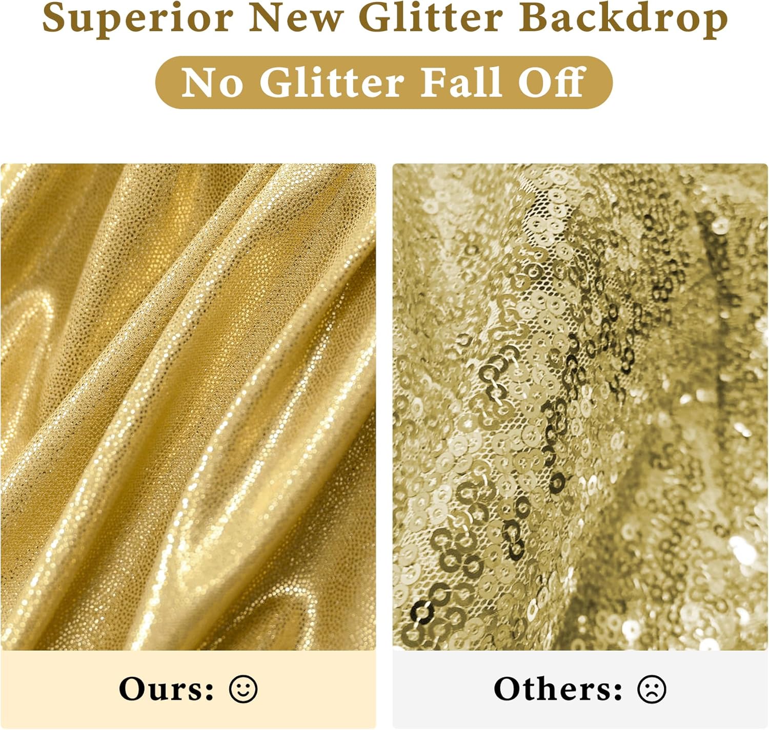 - New Glitter Thick Gold Backdrop Cloth: Package inclue 8pc 5*10ft gold sequin backdrop drapes. Made of soft and smooth polyester fabric and glitter, more superior than ordinary sequin backdrop curtains. It's more thick and not falling off sequins, make your parties more charming and sparkling.