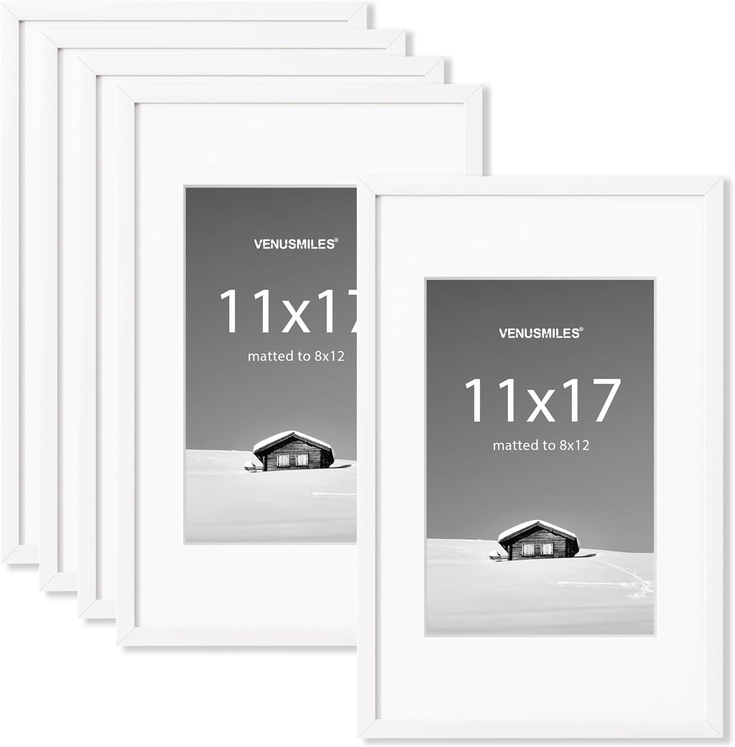 - Display Precious Memories - Showcase your cherished moments with our 11x17 plastic frame. It's lightweight yet sturdy with a superior quality finish. The white mat opening (measuring 7.5x11.5) is perfect for a 8x12 picture with the mat, or an 11x17 picture without it.