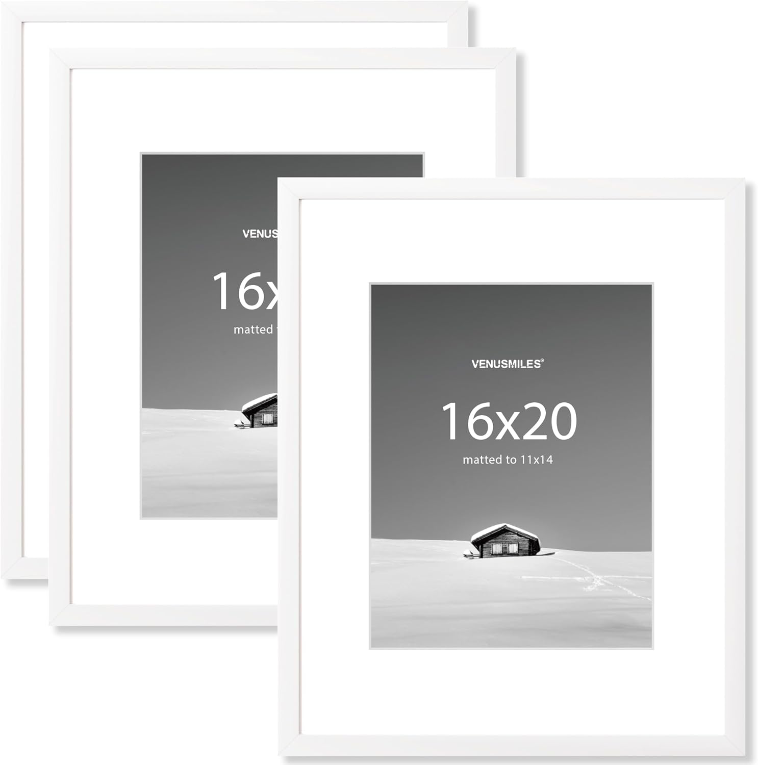 16x20 inch Picture Frame, 16x20 Photo Frames with 11x14 Removable Mat - High Definition Plexiglass - Vertical and Horizontal Display - Wall Hanging Frame - White, 3 Pack
