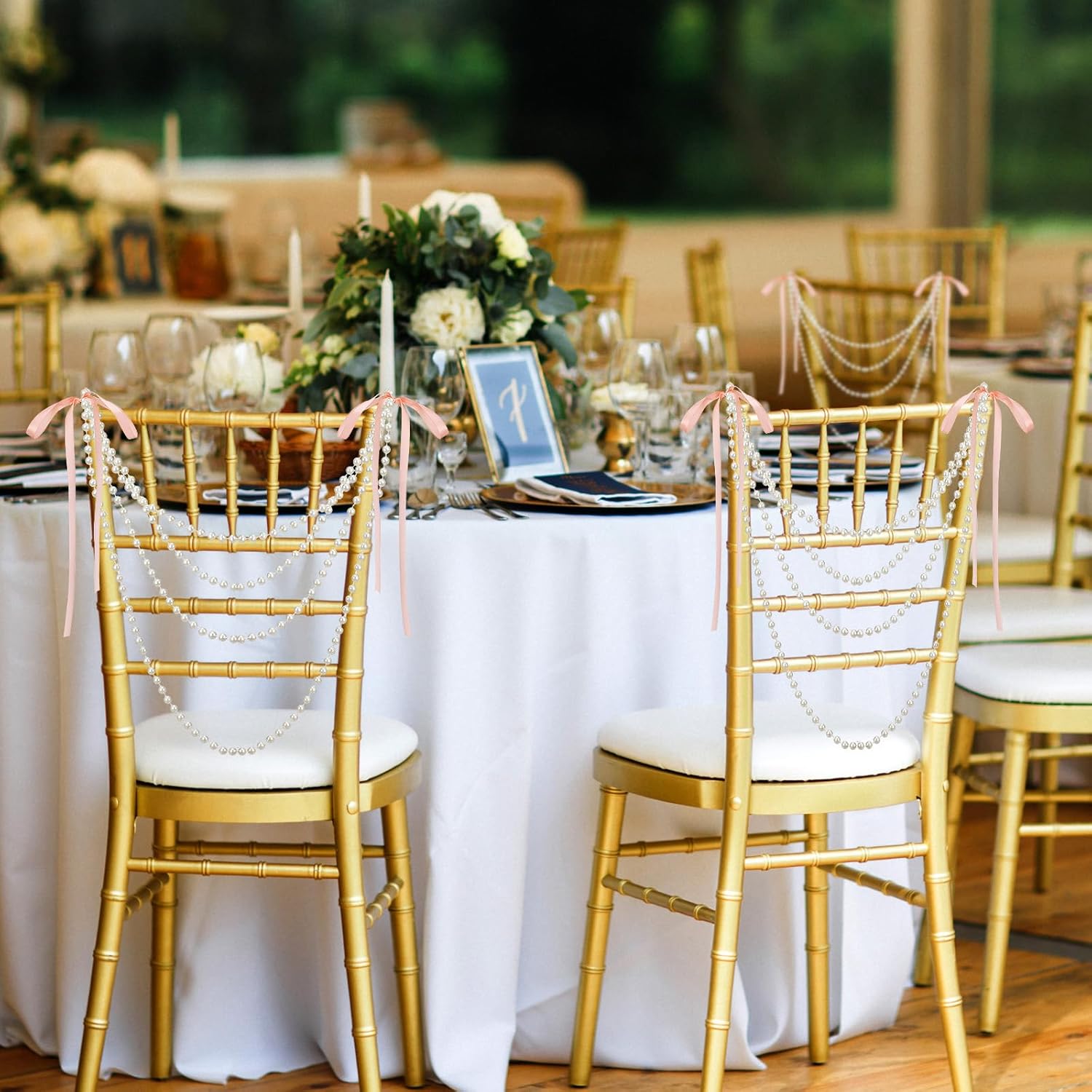 - Ideal Sized for Easy Application: the pre tied bows pearl string chair, measuring about 0.3 inch/ 7.5 mm in pearl's diameter and featuring about a width of 16 inches/ 40 cm and height of 12 inches/ 30.5 cm, is pre tied bows pearl string chair decorated for practicality; The champagne pink bows have an adjustable 43 inches/ 110 cm long ribbon, making them suitable for both indoor and outdoor settings without the worry of deformation or breakage