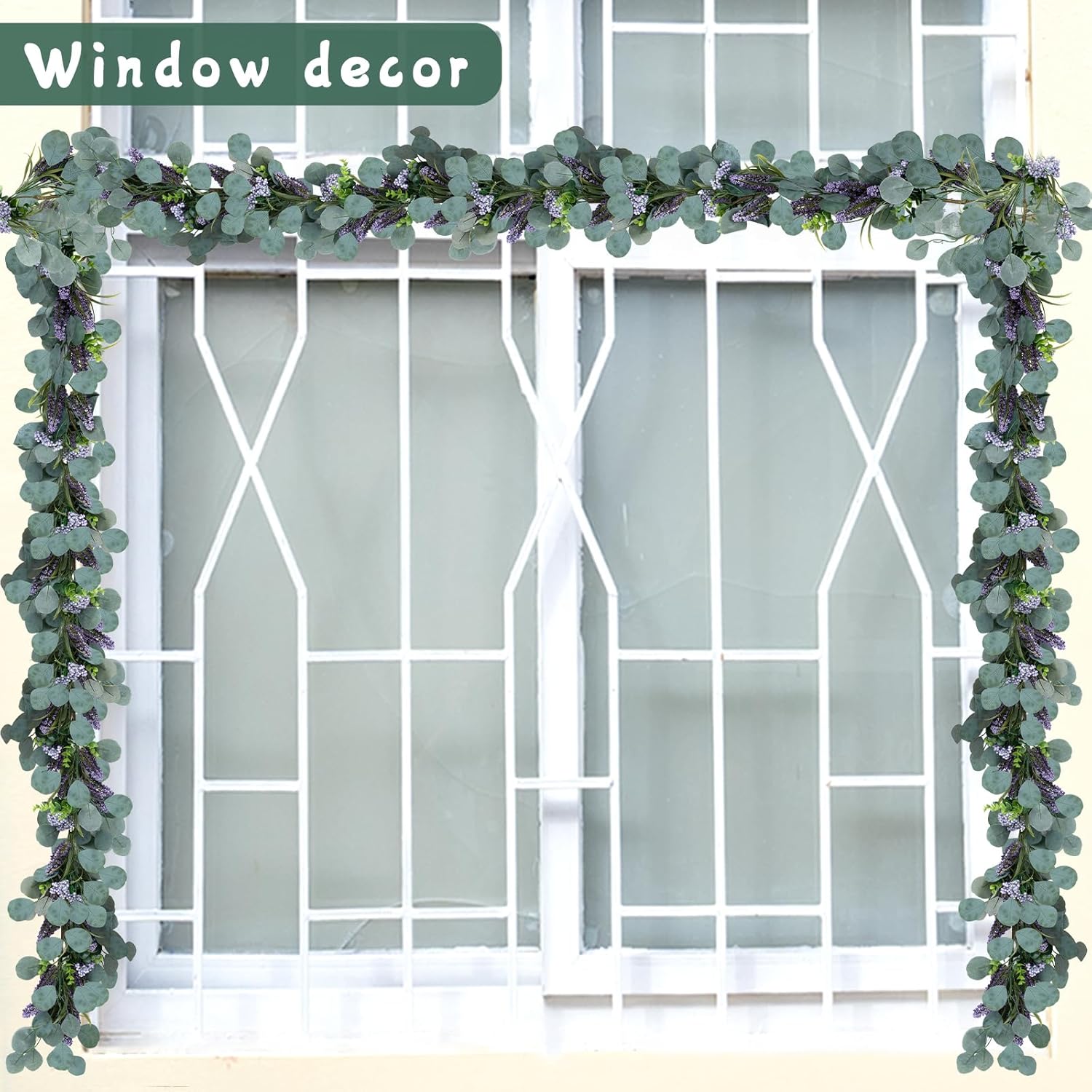 - 【Spring Garland for Decorating】: The garland flower made of Premium Plastic eucalyptus leaves with Purple foam pistil,With wire inside, the garlands for decoration is flexible and easily bent to any shape you want.Bring a touch of purity, romance, elegance, and tranquility to any space with our flower garland.