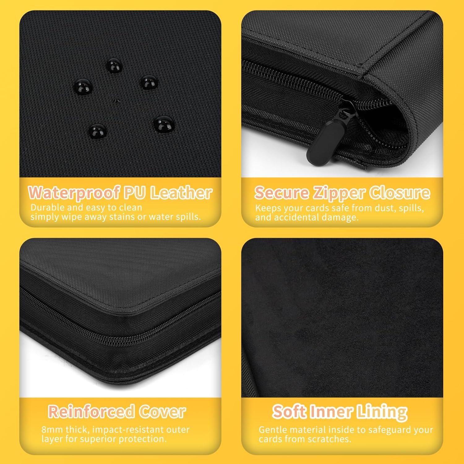 - Premium Protection: Designed with a sturdy zipper closure and durable PU material, this binder keeps your cards safe from dust, spills, and damage. The padded covers add extra security to your valuable collection.