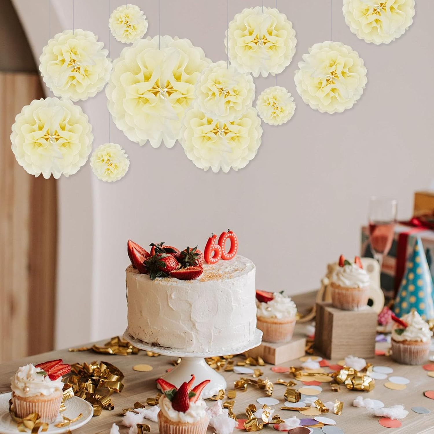 Tissue Paper Pom Poms, Ivory Tissue Paper Flowers, Hanging Flower Balls for Weddings Fiesta Parties Birthday Baby Showers Classroom Bridal Shower Decoration (20Piece Set-6/10/12/14Inch)