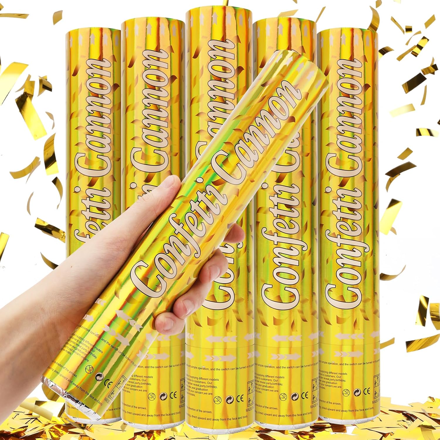 Confetti Poppers [5 Pack] 12 Inch Gold Confetti Cannons | Perfect for Graduation, New Year’s Eve, Weddings, Birthday Parties & All Celebrations | Gold Mylar Confetti for Festive Occasions