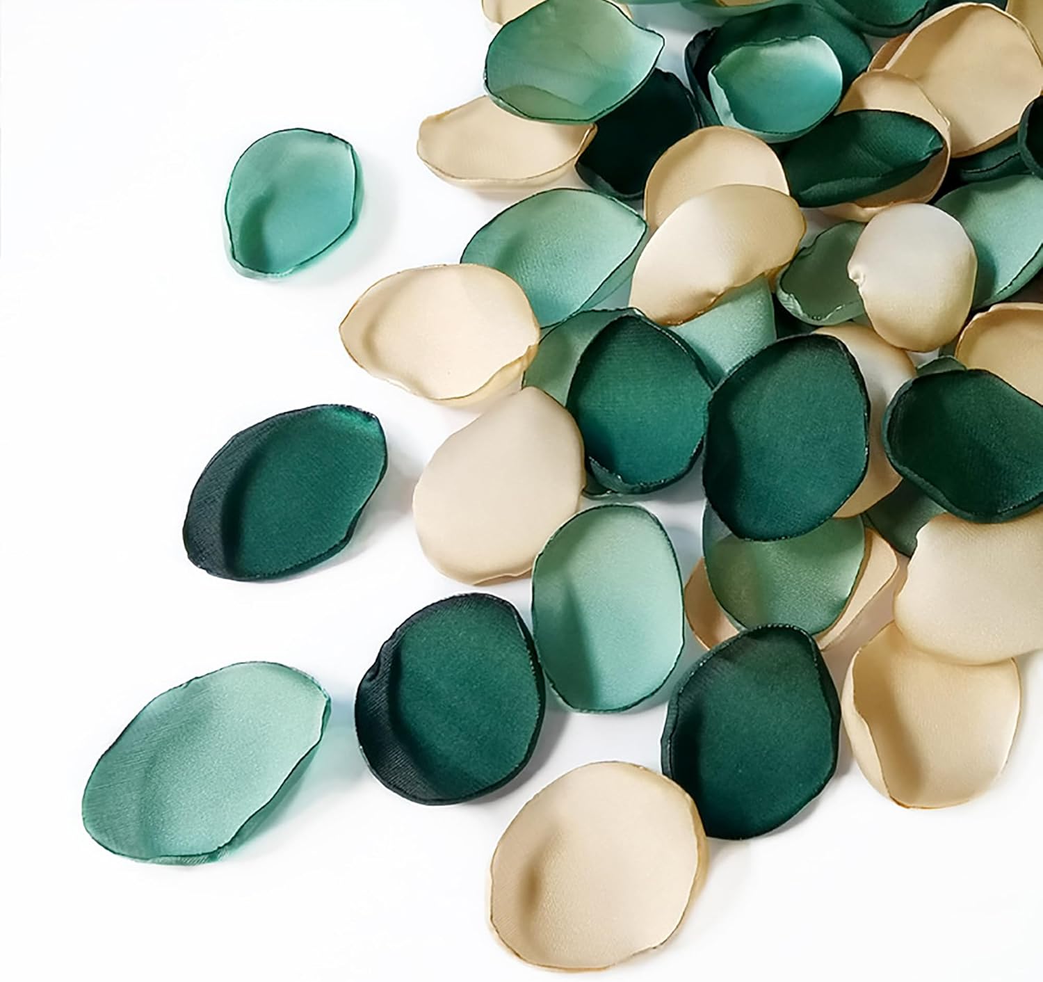 400pcs Satin Silk Rose Petals, Artificial Wedding Petals for Aisle/Table Centerpiece/Flower Girl Basket, Handmade and Reusable Flower Petals for DIY Party/Valentine's Day/Bridal Shower (Forest Meadow)