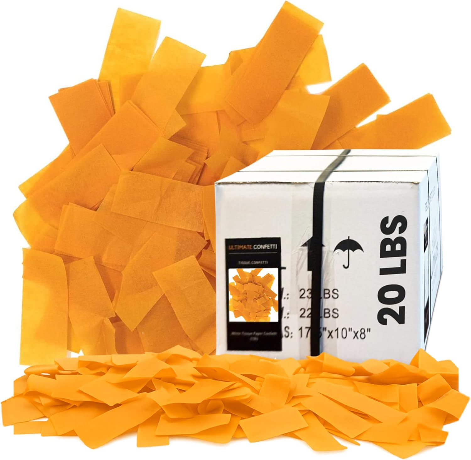 Ultimate Confetti, Orange Biodegradable Confetti – Rectangular Fluttering Tissue Paper Confetti for Cannon and Launcher use – Best for Gender Reveal, Parties, Concerts and Weddings - 20 lb, 320 oz