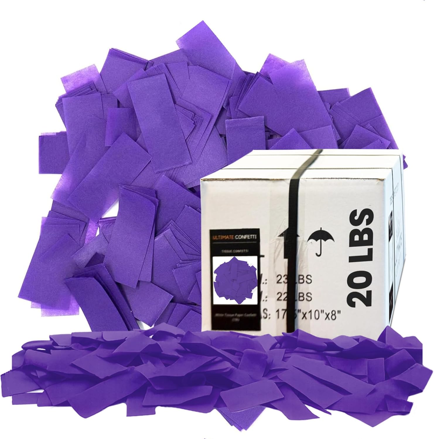 Ultimate Confetti, Purple Biodegradable Confetti - Rectangular Fluttering Tissue Paper Confetti for Cannon and Launcher use – Best for Gender Reveal, Parties, Concerts and Weddings - 20 lb, 320 oz