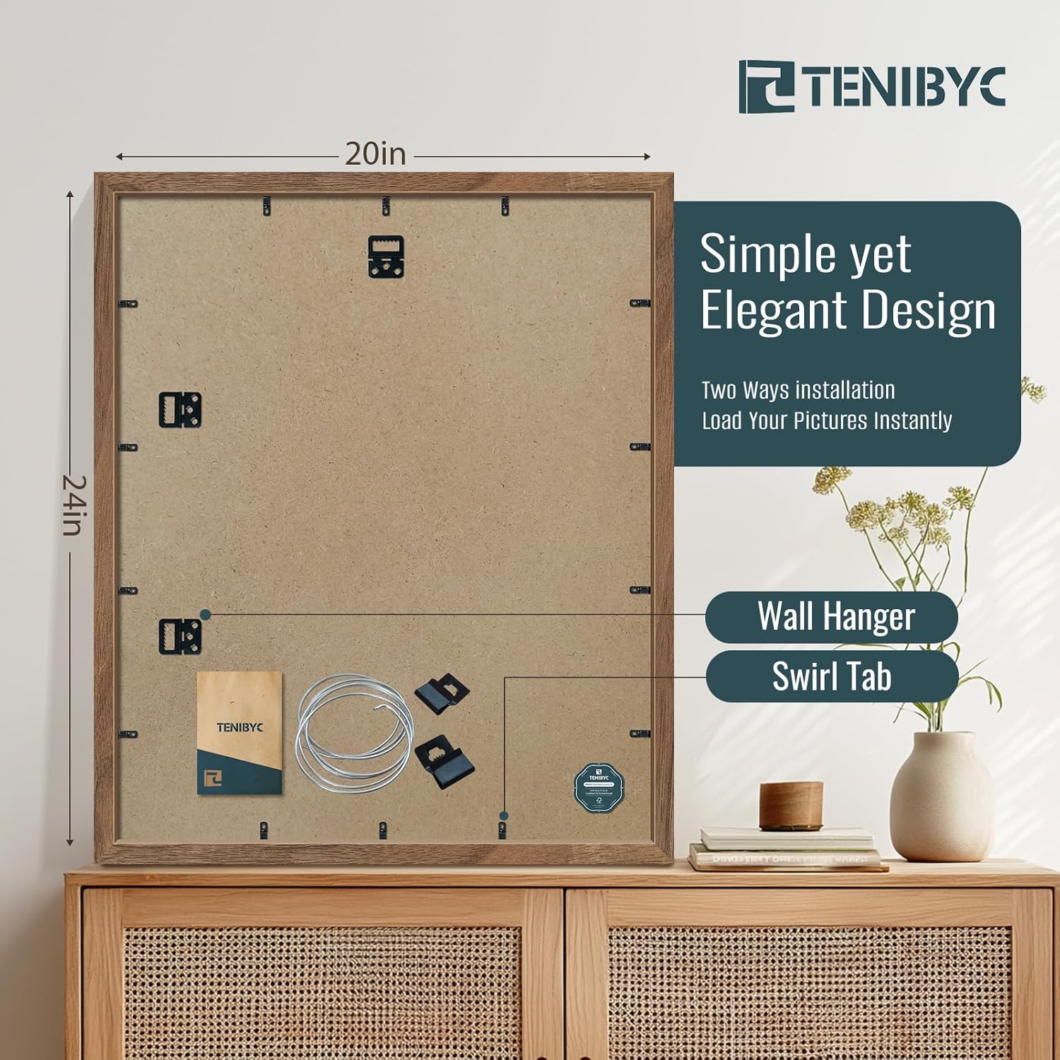 - ăStrong PracticalityăOur walnut frame back panel is equipped with multiple hangers, so it can be displayed on the wall horizontally or vertically, perfectly adapting to 20x24 or 24x20 photos. Additionally, our unique spin-lock design ensures a swift and effortless setup