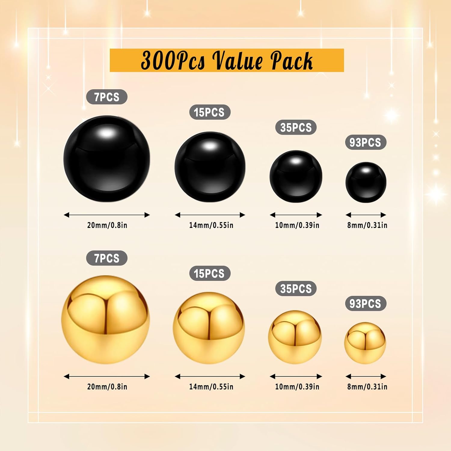 300Pcs Pearl Vase Filler, Black BrightGold No Hole Faux Pearl Beads for Centerpieces Vases, Candle Centerpieces, Wedding Birthday Party Home Decor 8/10/14/20mm