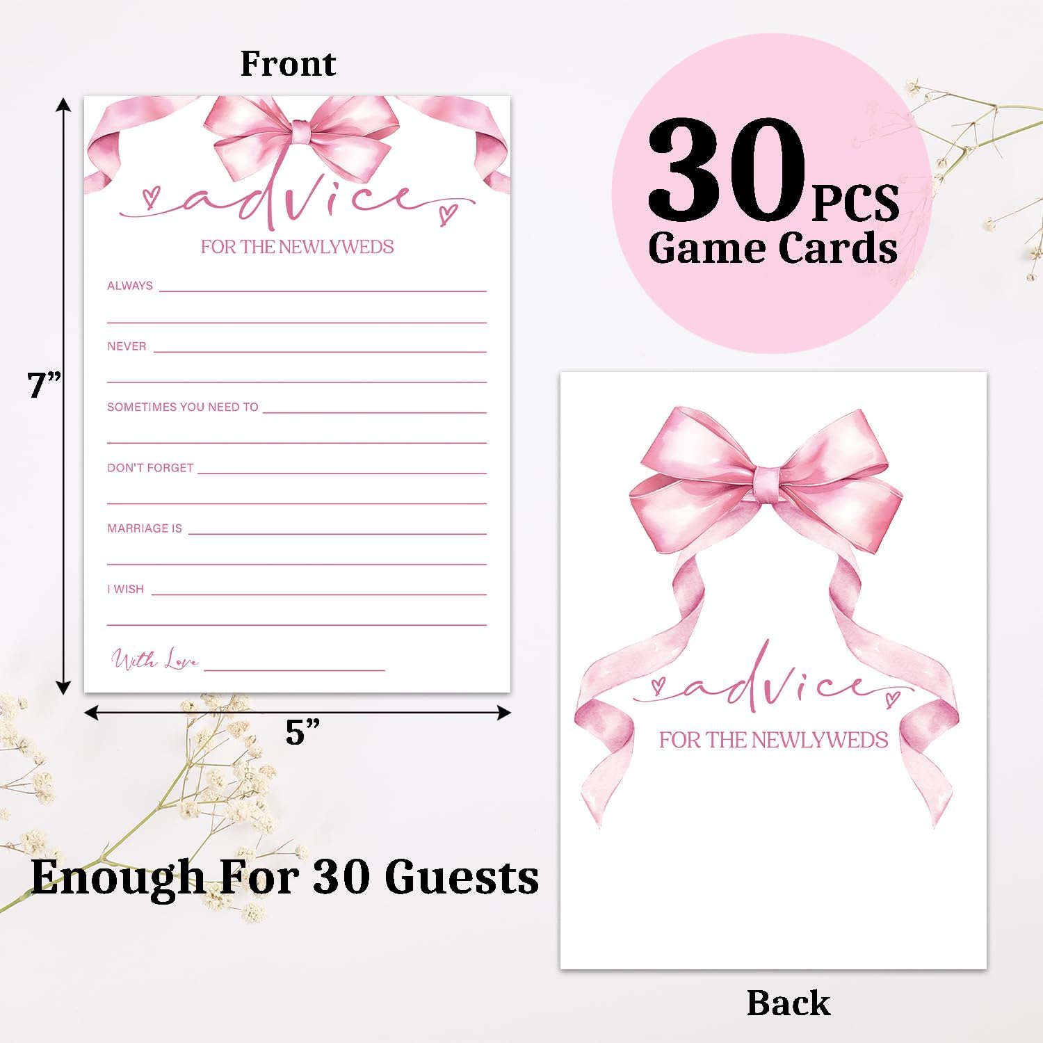 - What Will You Get: A set of 30 game cards. The exquisite bow embellishment is suitable for parties with different themes. It will definitely make your guests laugh.