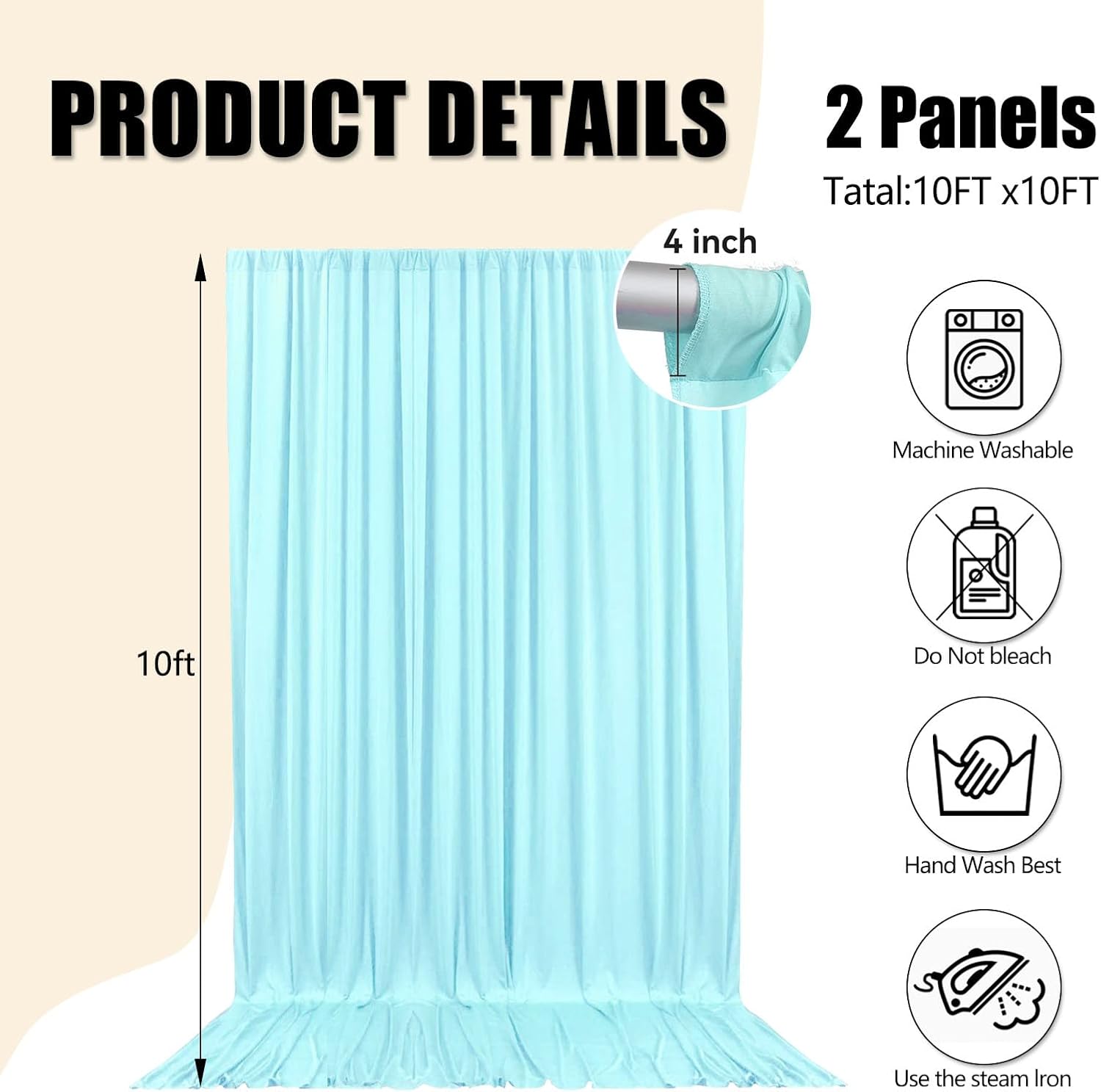 - 【Package Include】Each pack contains 2 panels of fabric shiny satin backdrop curtains. Each backdrop measures 10 feet x 10 feet (60 inches x 120 inches). There is a rod pocket designed on the top of the curtain, allowing you to easily hang it on a pipe or background stand. Tips: ONLY the backdrop curtains, no include a stand.