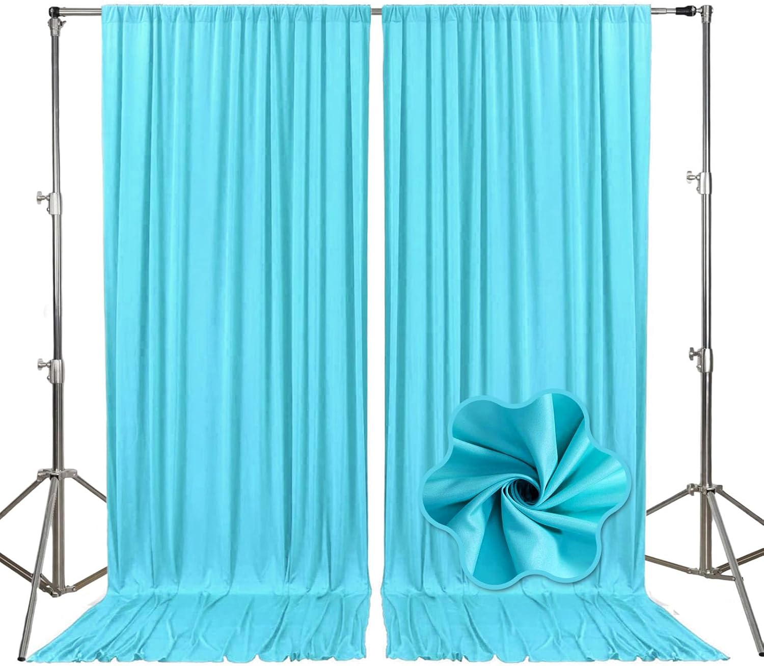 10ft x 10ft Sky Blue Backdrop Curtains for Parties, Fabric Satin Background Curtain with Rod Pockets for Weddings, Birthday, Baby Shower, Photography, Graduation Party Backdrop Drapes, 2 Panels