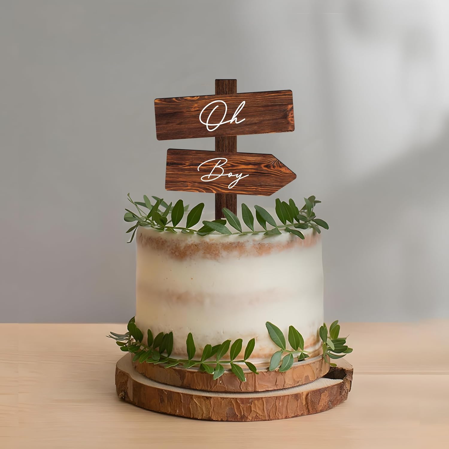 Rustic Oh Boy Cake Topper in Wood Baby Shower Gender Reveal Party Cake Decoration