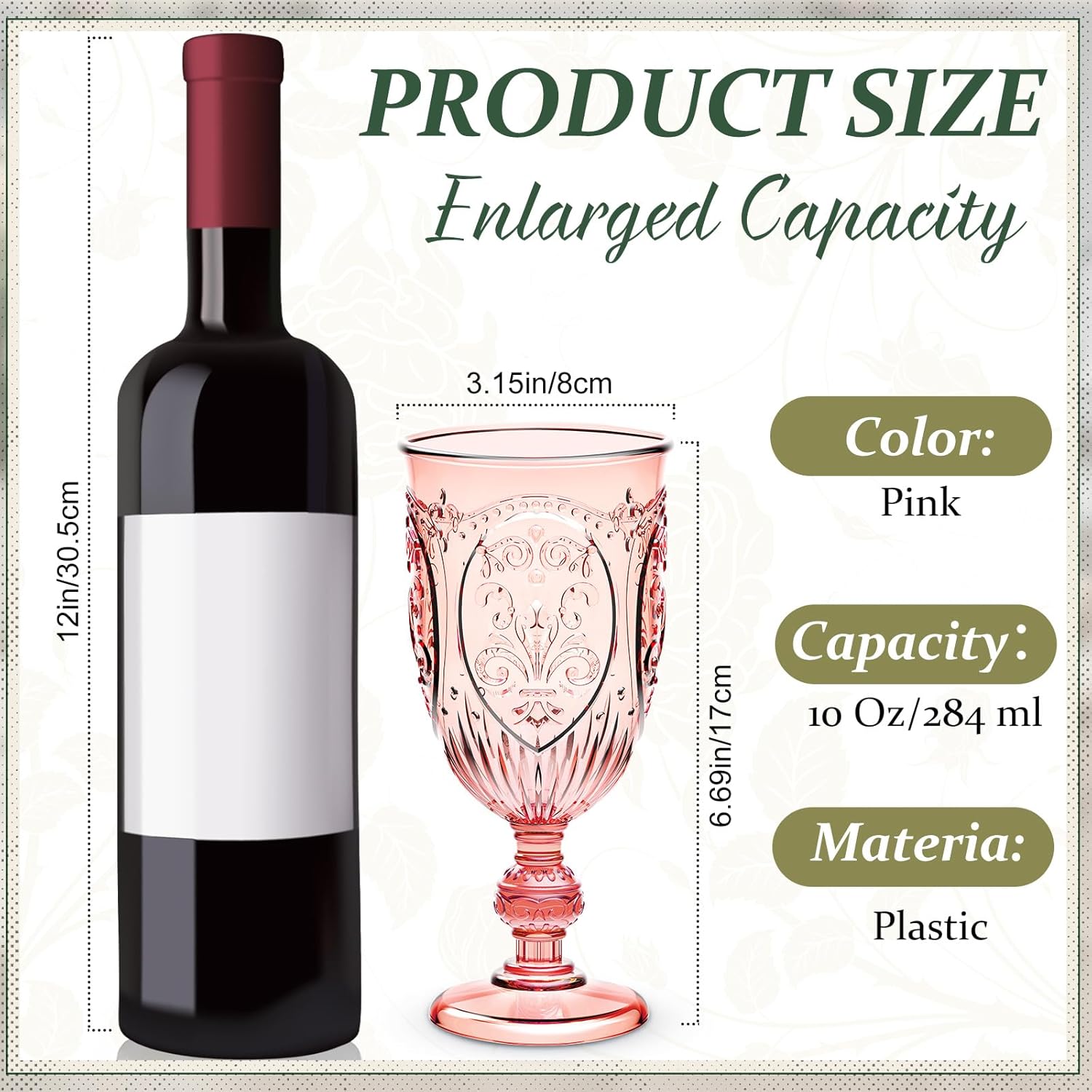 - Plastic Pink Goblet Set: you will receive a set of 36 plastic pink goblets, each with a capacity of 10 ounces; The bright and charming pink color adds a unique touch to various occasions; Whether as party decorations or the perfect gift for weddings or other special events, this goblet set will add a touch of elegance and joy to your celebrations