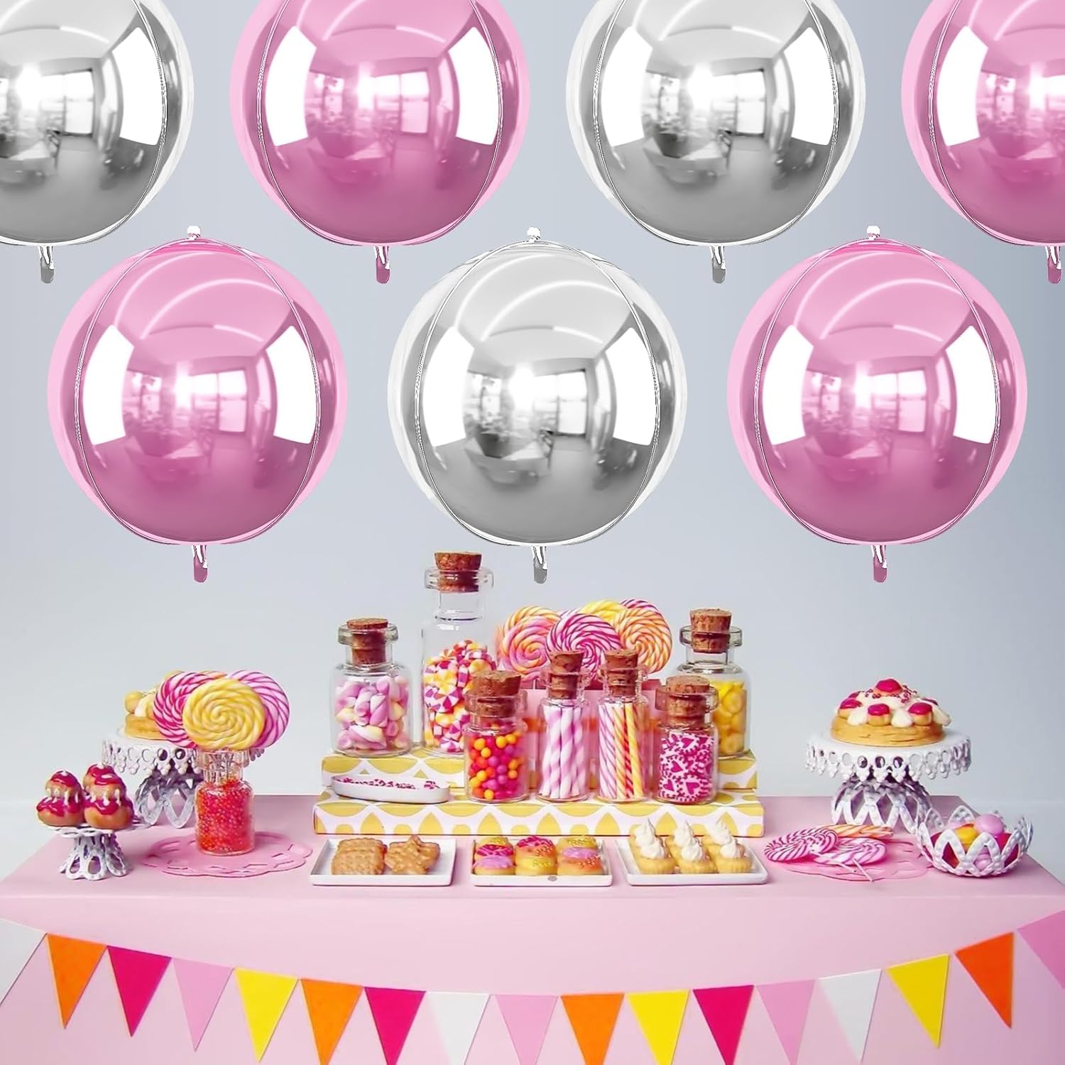 - Package: You will receive 6pcs 22inch 4D round foil balloon, 3pcs pink foil balloons + 3pcs silver foil balloons + 1 straw + 1 roll of ribbon. 4D birthday balloons perfect for decorating the babies, kids, adultsโ birthday party.