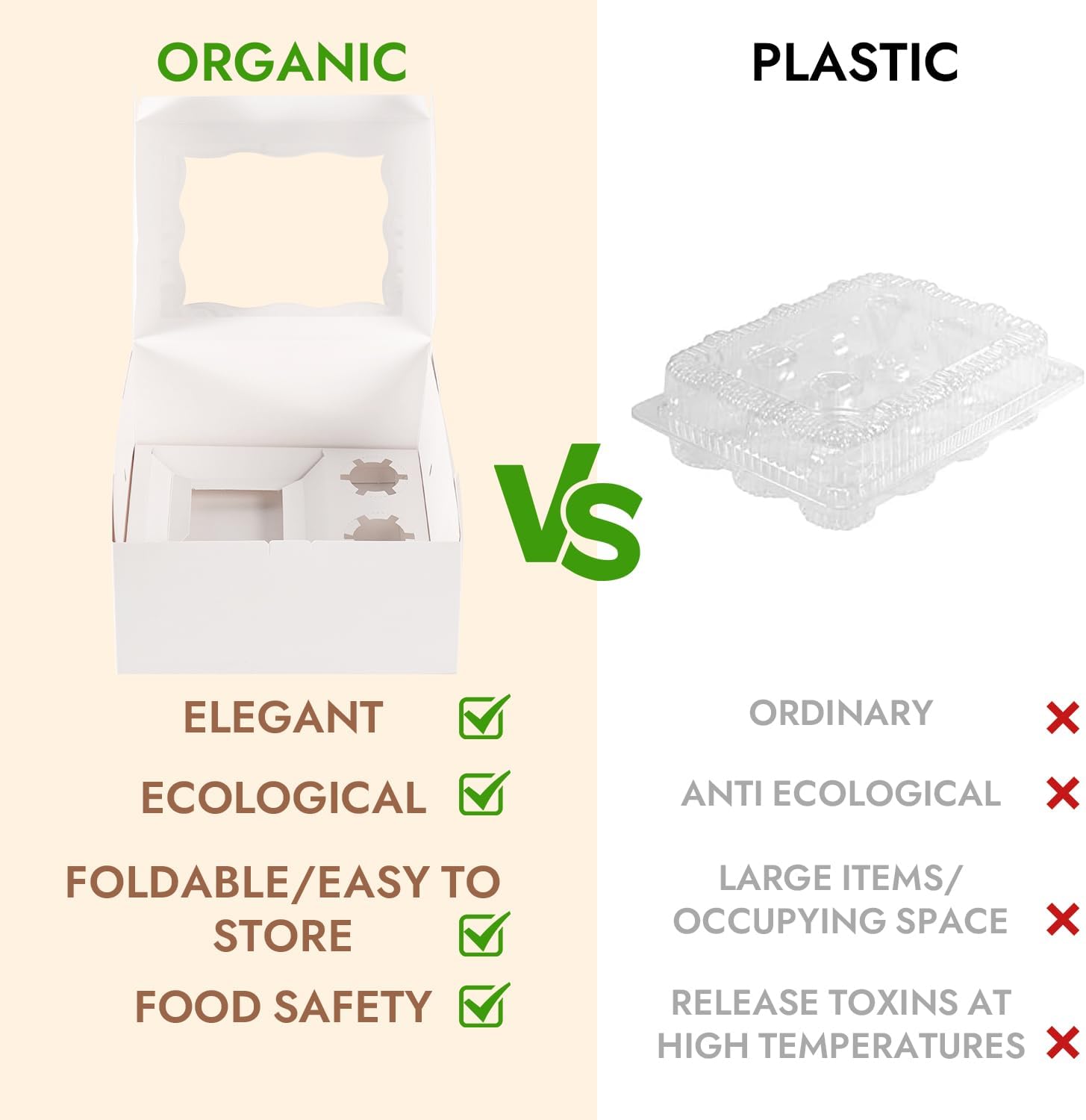 - Package Includes:8 Packs Cake and Cupcake Box Combo with Clear Window.cupcake boxes + inserts+ Stickers.The paper inserts keep the cupcakes stay in place from moving around. The cake box has a wide viewing angle, perfect for showcasing cakes while protecting them. It is a great choice for making cupcakes and pastries.