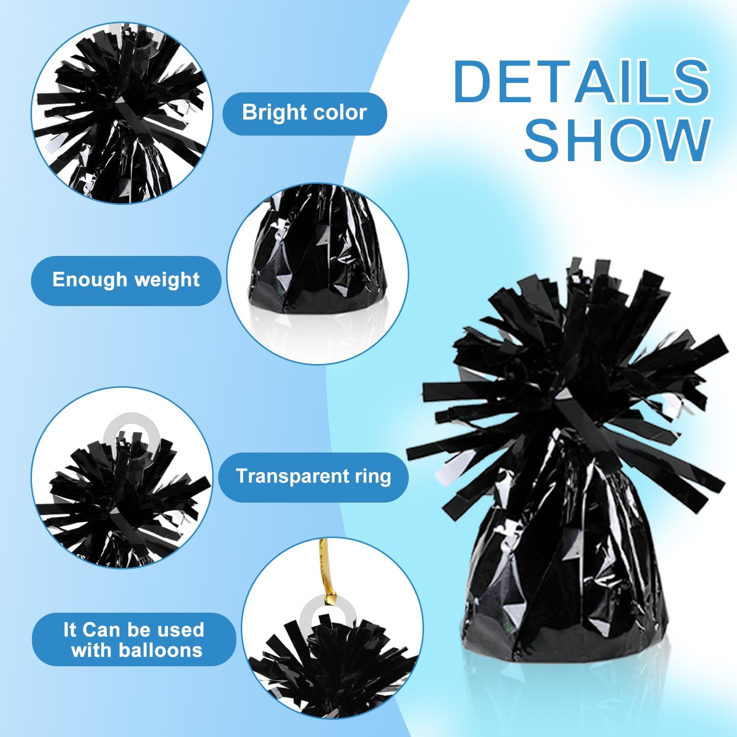 12PCS Balloon Weight Metallic Heavy Solid Balloon Pendant Pack Holder For Table Centerpieces Birthday Wedding Chrismas Party Decoration (Black)