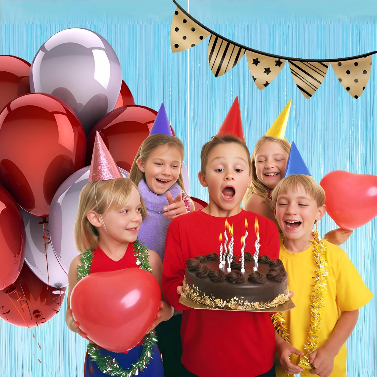 Keyali 2 Pack 3.3 * 8.3 ft Foil Curtain Metallic Tinsel Fringe Curtains Photo Booth Props Backdrop for Birthday Wedding Engagement Baby Shower Christmas Holiday Celebration Party,Macaron Light Blue