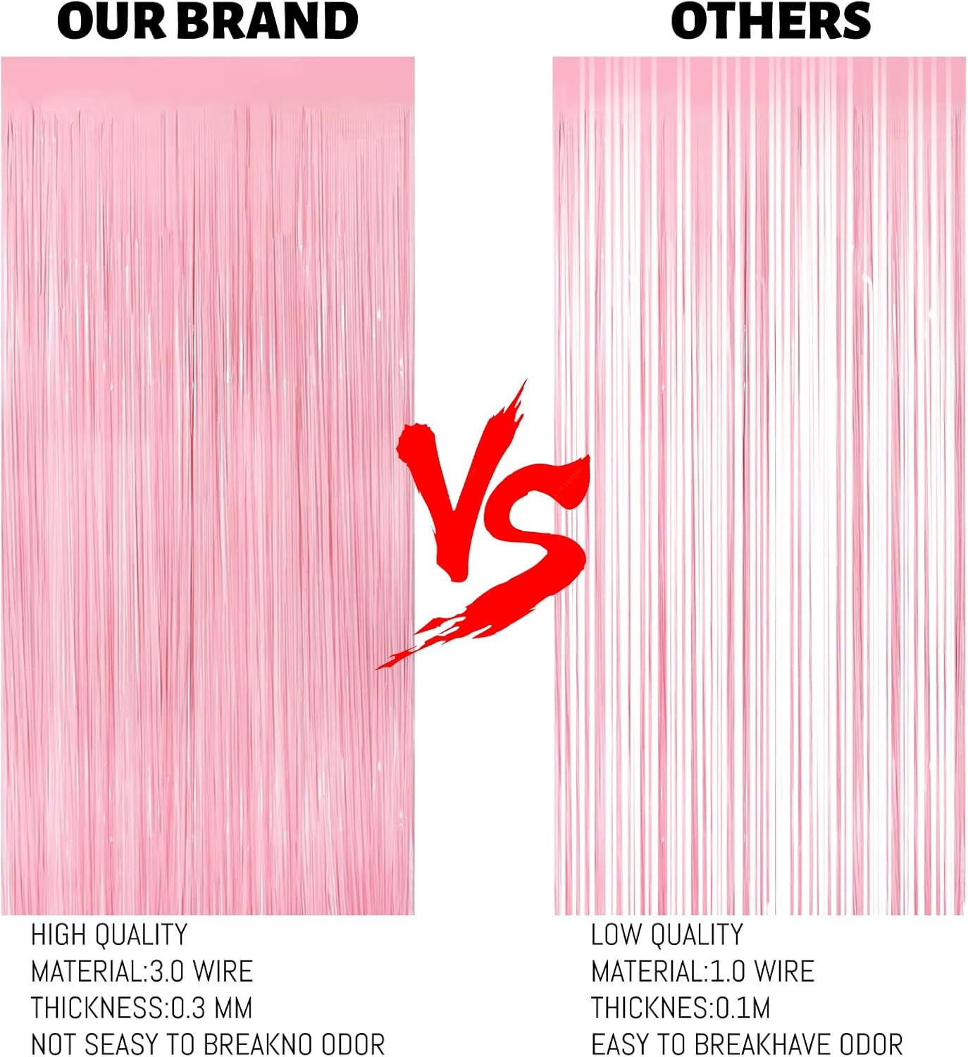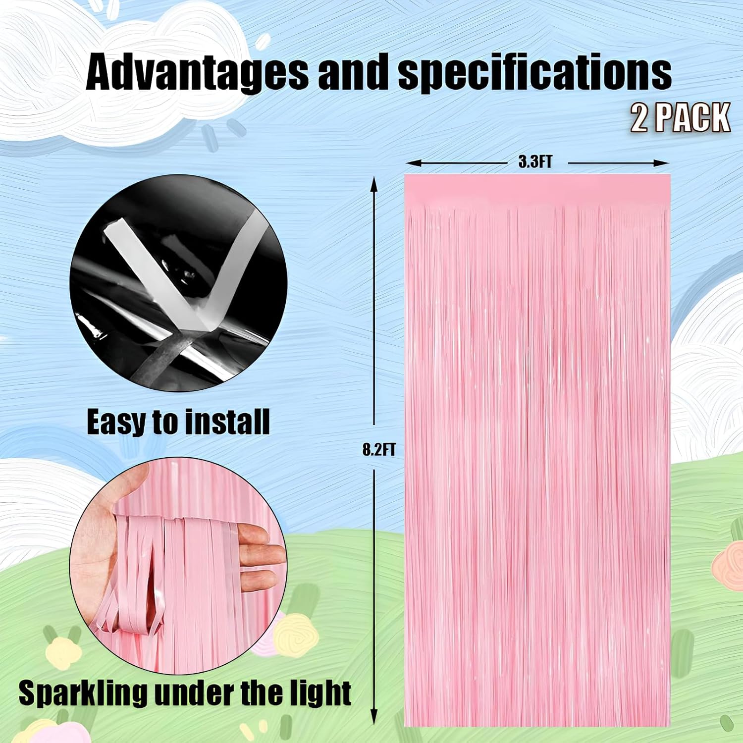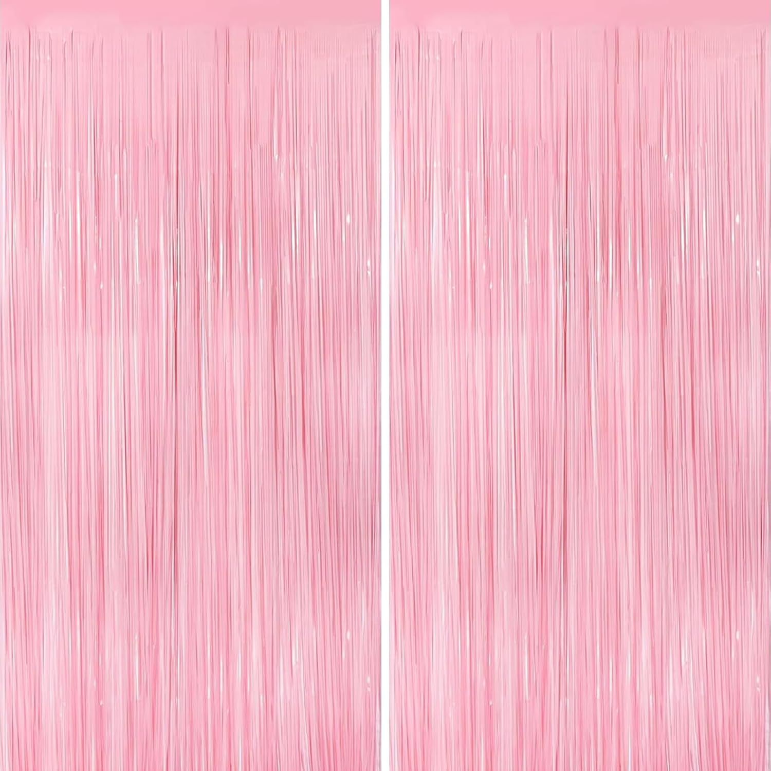 Keyali 2 Pack 3.3 * 8.3 ft Foil Curtain Metallic Tinsel Fringe Curtains Photo Booth Props Backdrop for Birthday Wedding Engagement Baby Shower Christmas Holiday Celebration Party,Pastel Pink