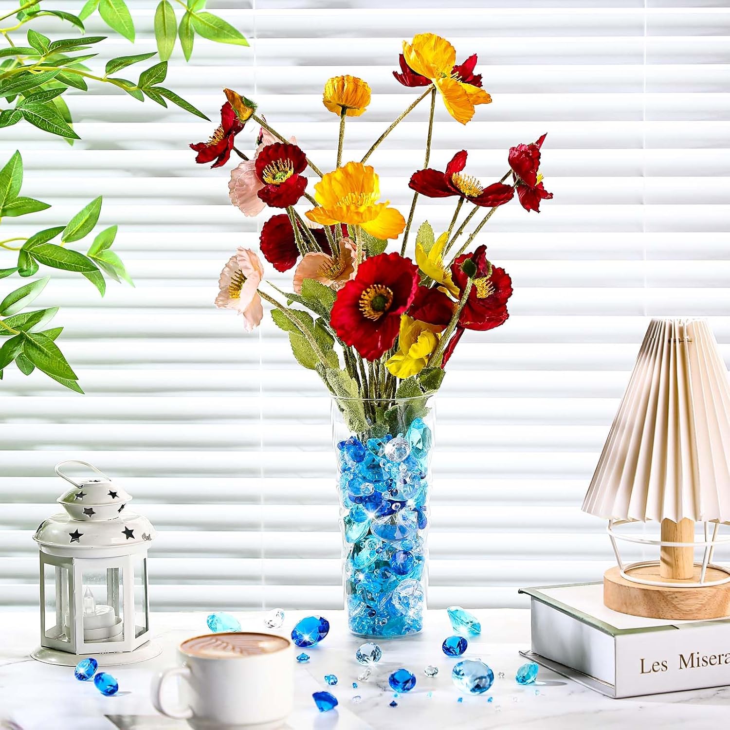 Hicarer 800 Pieces Diamond Decorations Acrylic Diamond Table Scatter Crystals for Table for Vase Fillers Party Decorations(20, 12, 10, 6, 3mm,Gradient Blue)