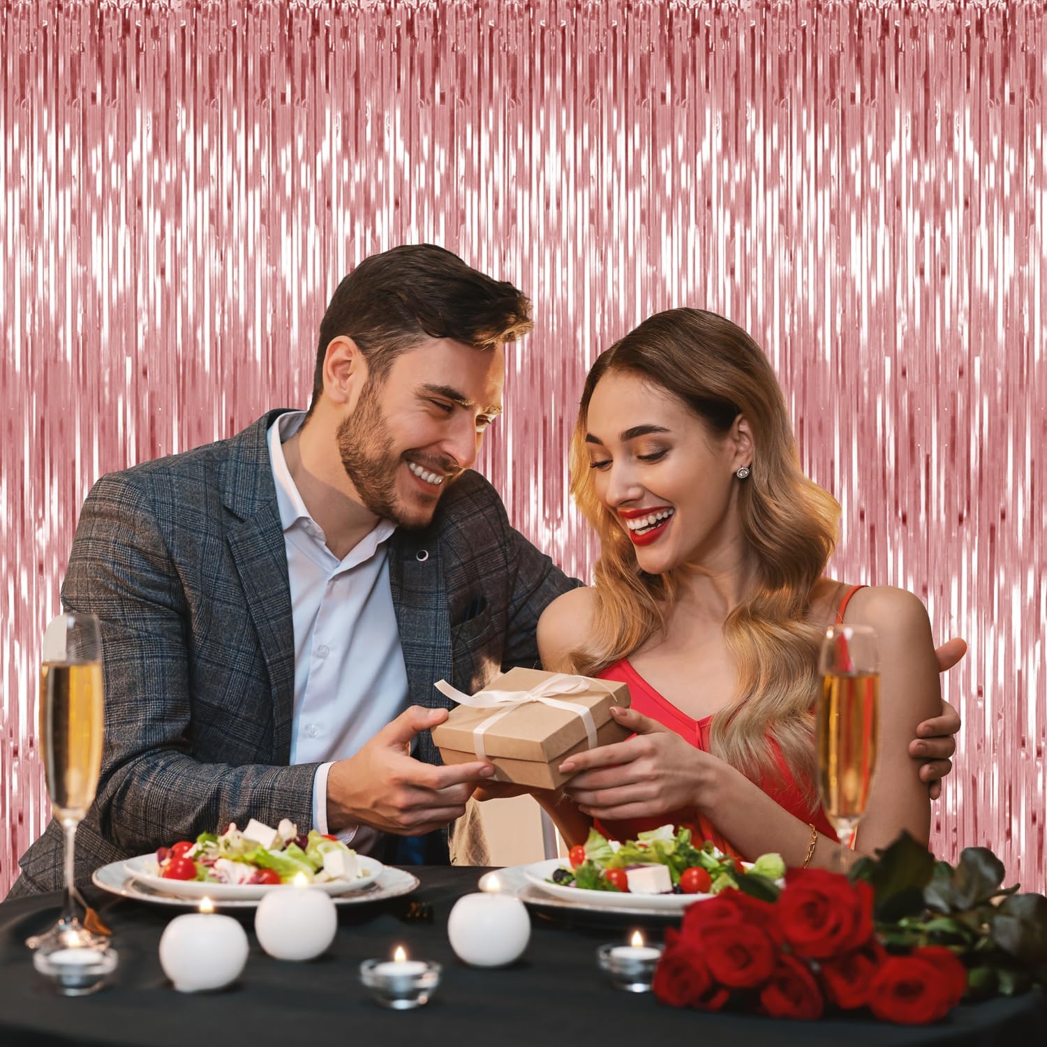 - Elevate Your Experience:Show off your creativity by pairing this stunning rose gold foil curtain with other door streamers of different colors to achieve the color combination that you desire! You could pair and match its elegant rose gold color with Black to achieve a grandeur and sophisticated shade, or match this rose gold party decorations with white to achieve an elegant and glamorous color combination for bachelorette decorations or rose gold birthday decorations.