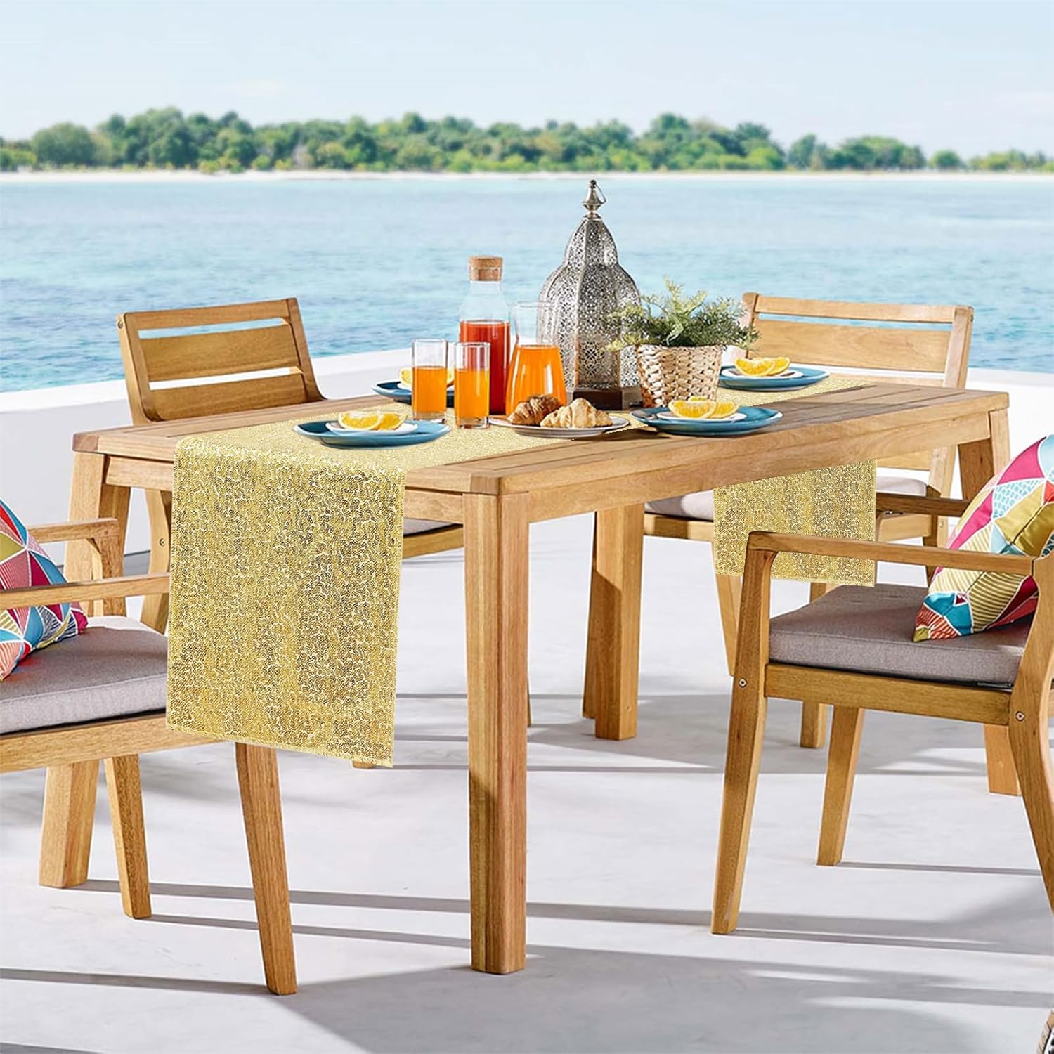 2 Packs 12 x 72 inches Sequin Table Runner, Gold Glitter Table Runner for Birthday Party Supplies Wedding Engagement Baby Shower Holiday Celebration Event Decorations