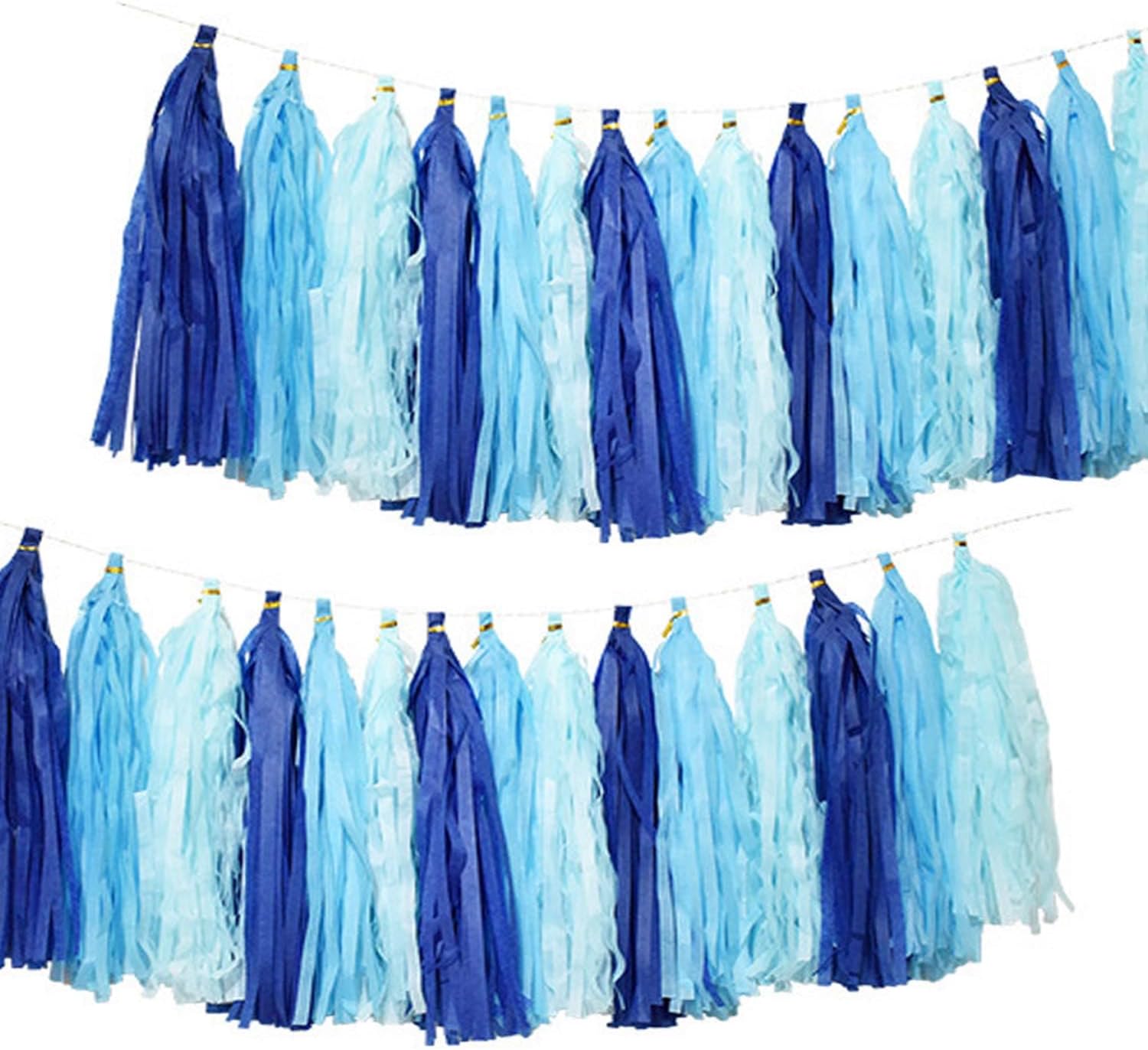 Blue Party Decorations,Navy Blue Light Blue and Blue Paper Tissue Tassel Garland Banner,15 Pcs