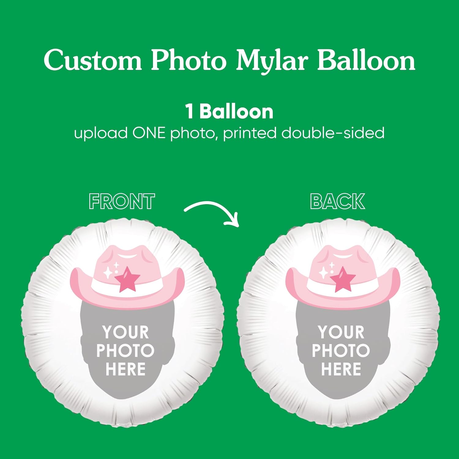 Big Dot of Happiness Personalized Pink Rodeo Cowgirl Fun Face Photo Balloon, Western Bachelorette or Birthday Party Decorations, Custom Double-Sided Circle Mylar, 1 Piece
