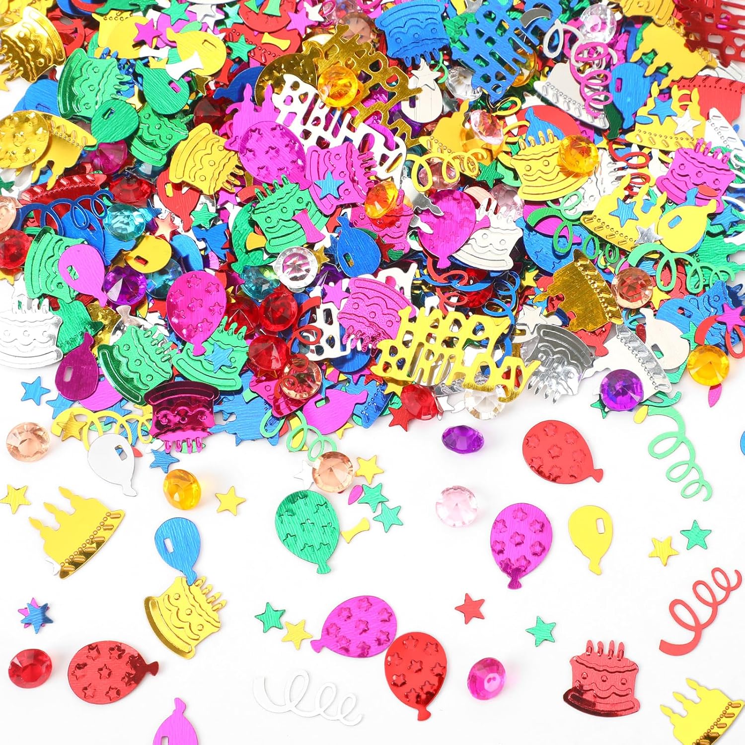 MARFOREVER Happy Birthday Glitter Confetti, Birthday Party Metallic Foil Table Confetti Multicolor Cake Balloon Sprinkles Table Centerpiece for Baby Shower Party Decorations