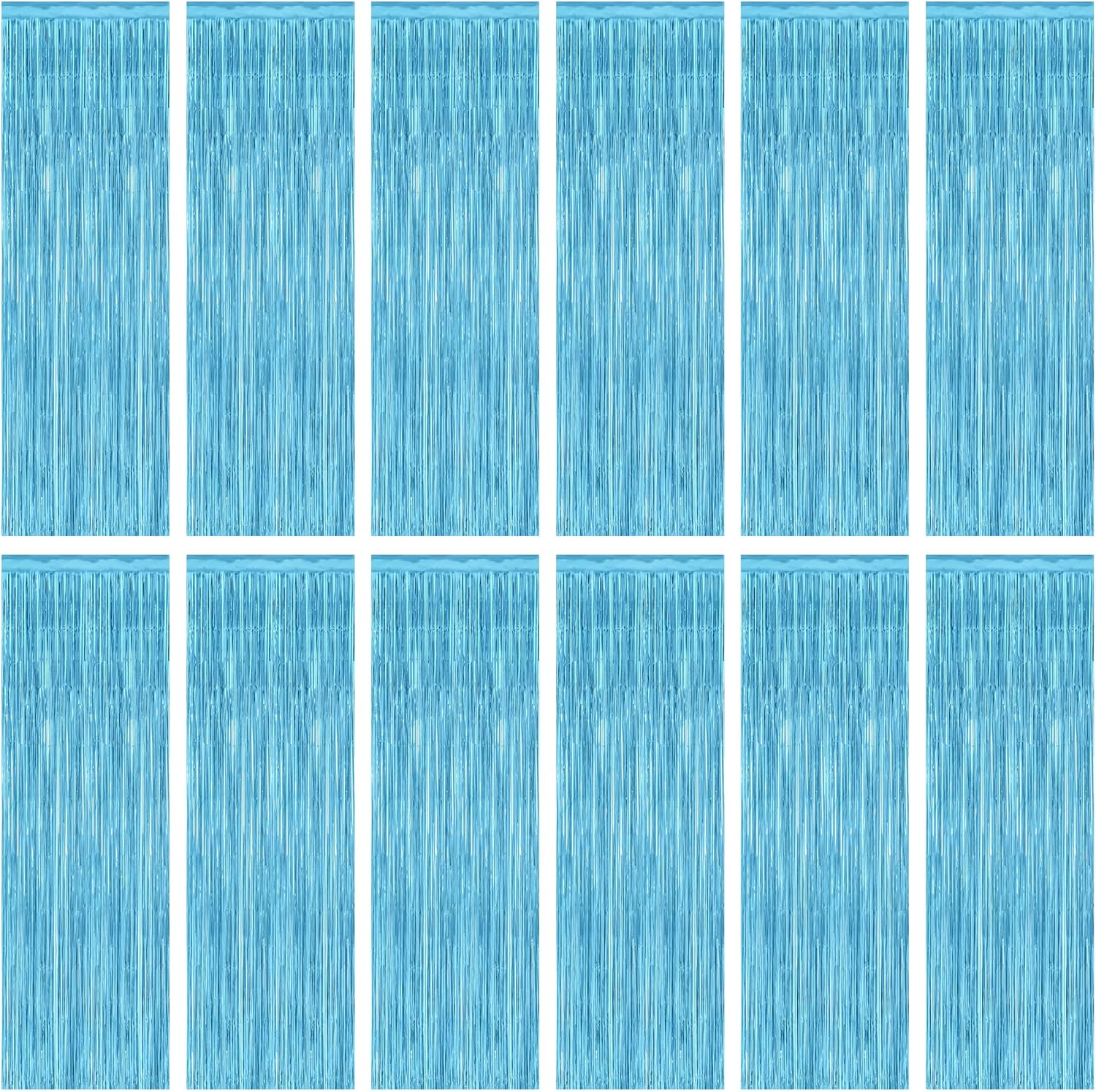 12 Pack Party Decorations, 3.28 FT x 7.05 FT Sky Blue Curtains, Metallic Party Streamers Photo Booth Backdrop Foil Fringe Curtains, Light Blue Winter Wonderland Backdrop Birthday Decor