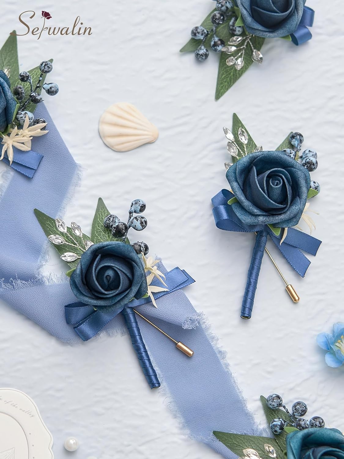 Serwalin 10Pcs Boutonniere for Men, Blue Groom and Best Man Boutonniere, Artificial Flowers for Wedding Decor Prom Homecoming Ceremony Anniversary Formal Dinner Party