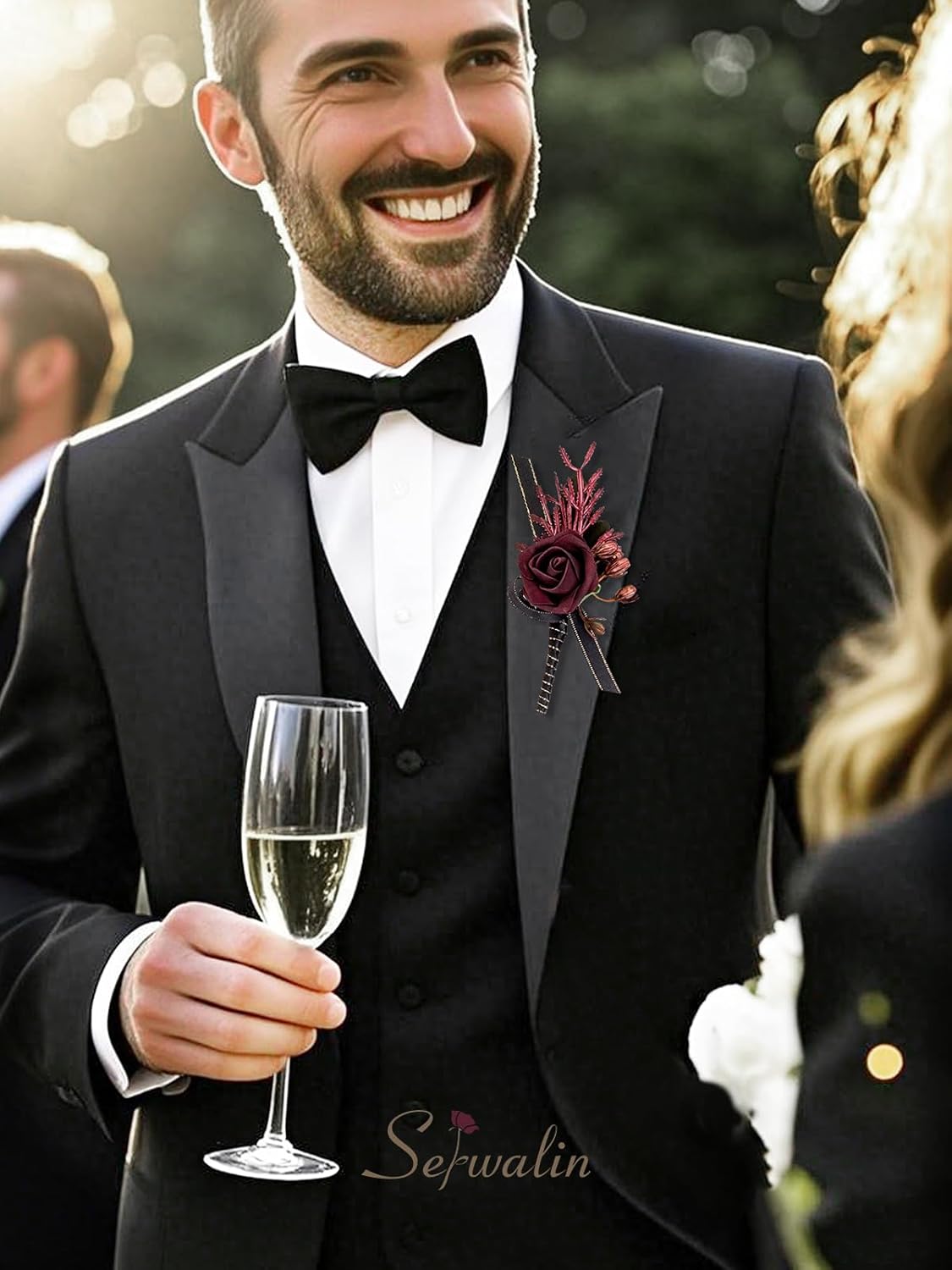Serwalin 10Pcs Boutonniere for Men, Burgundy Groom and Best Man Boutonniere, Artificial Flowers for Wedding Decor Prom Homecoming Ceremony Anniversary Formal Dinner Party