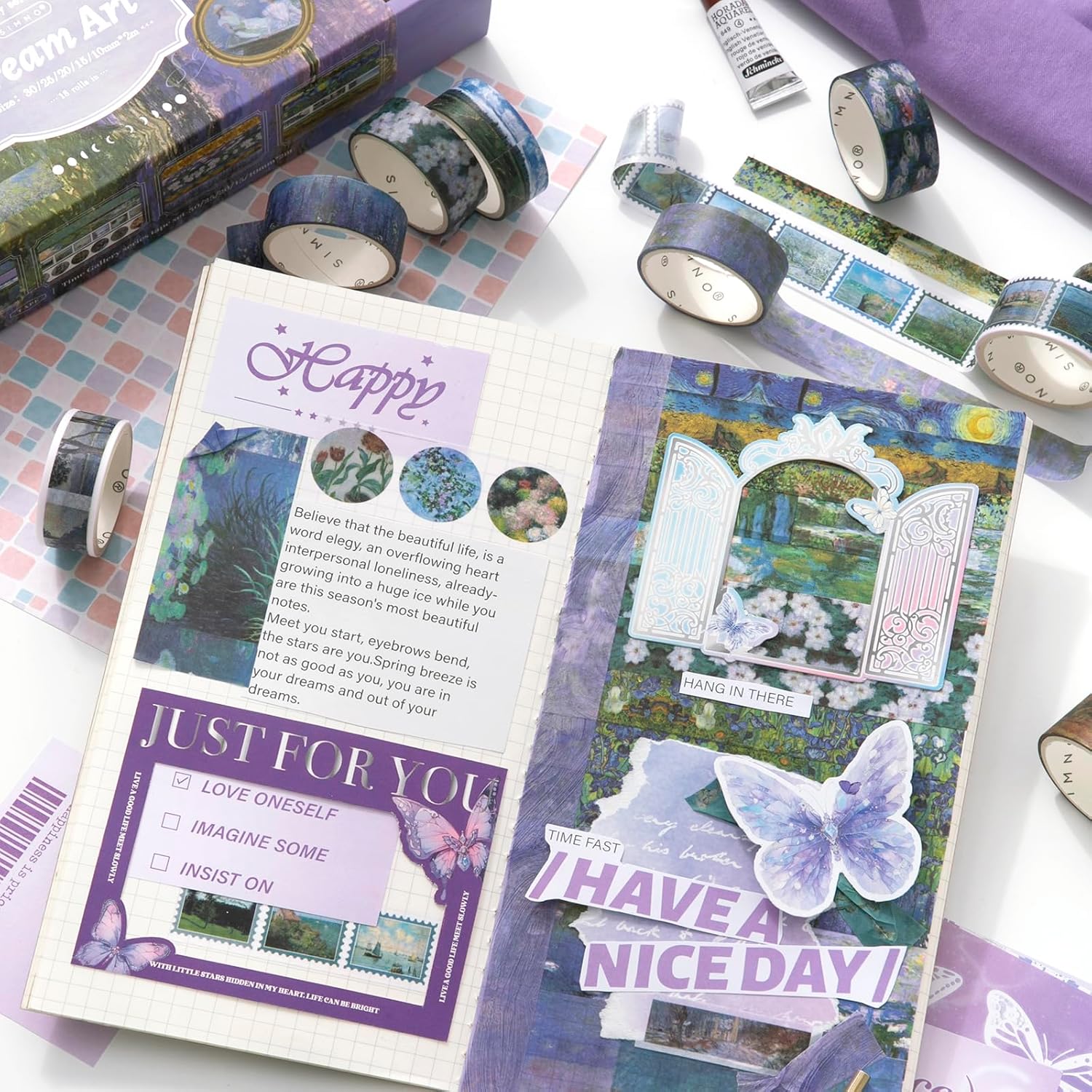 - Decorative washi tape features different patterns inspired by Monet and Van Gogh's oil paintings. Its unique style and artistic charm make it great for use in art, washi tape, decorative paintings, and cultural and creative products.