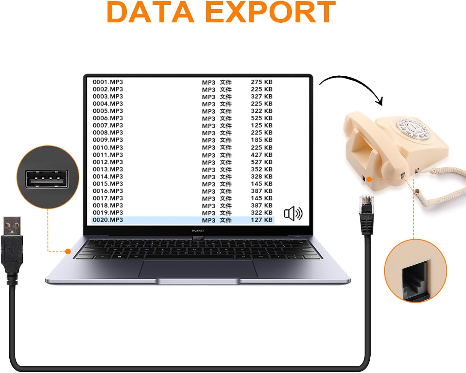 - 【Easy to Use】 Pick up the handset, according to the built-in voice prompt button can save or play back the recording, easy to operate, after recording, connect the data cable to the guest book phone and the computer can export all message data storage.