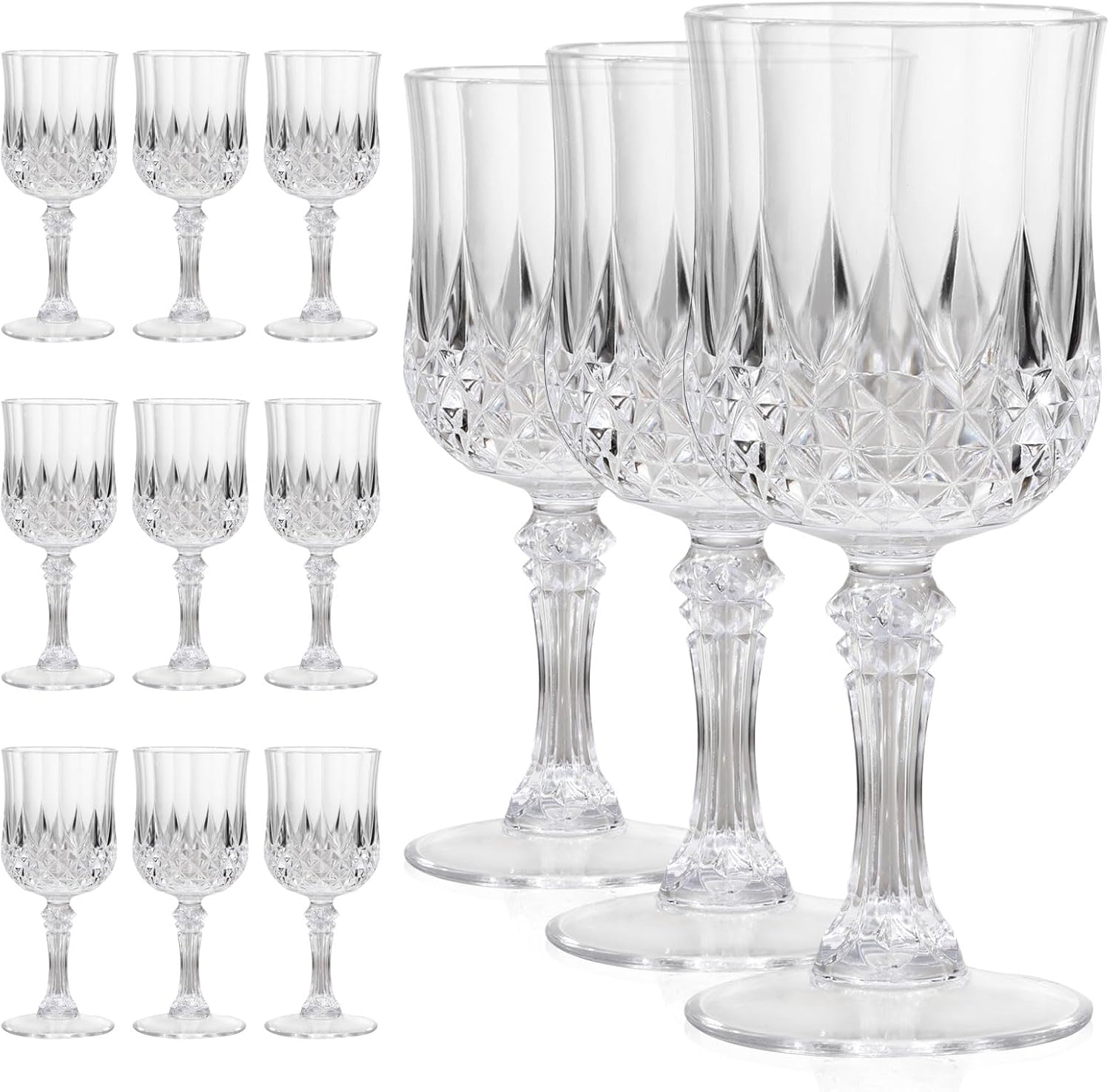 - {7oz Capacity & Shatter-Proof Design} Perfectly sized for wine, cocktails, or beverages, these vintage plastic wine glasses hold 7.5oz of liquid. Crafted from ultra-durable, BPA-free plastic, they resist cracks and breaks even during lively celebrations