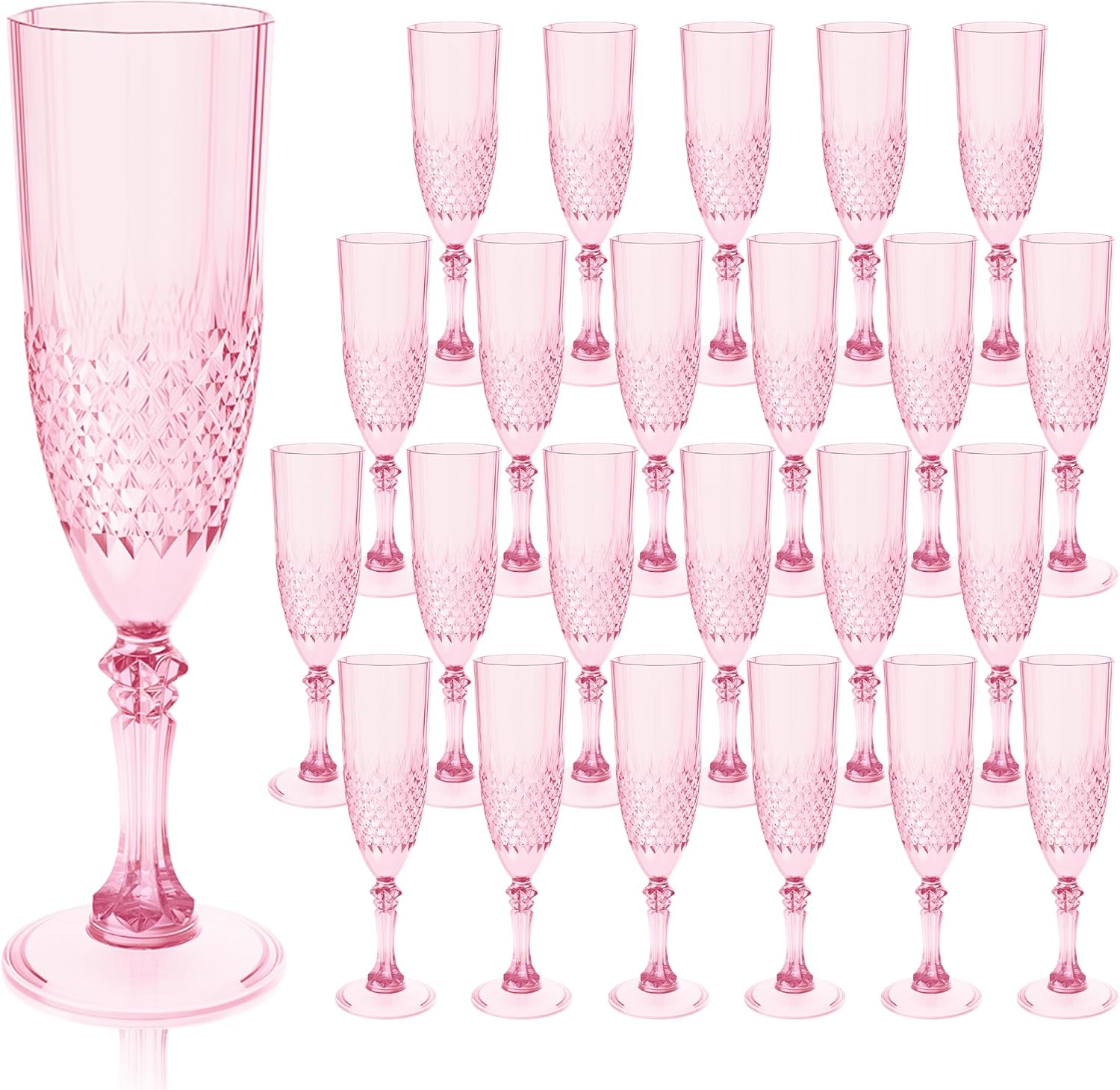 - Charming Set: Champagne flutes set include 24 retro-style pink champagne plastic wine glasses, providing ample quantity to meet your daily use and replacement needs. A suitable champagne cup is the icing on the cake. Plastic wine glasses not only carry the wine, but also carries the laughter and blessings