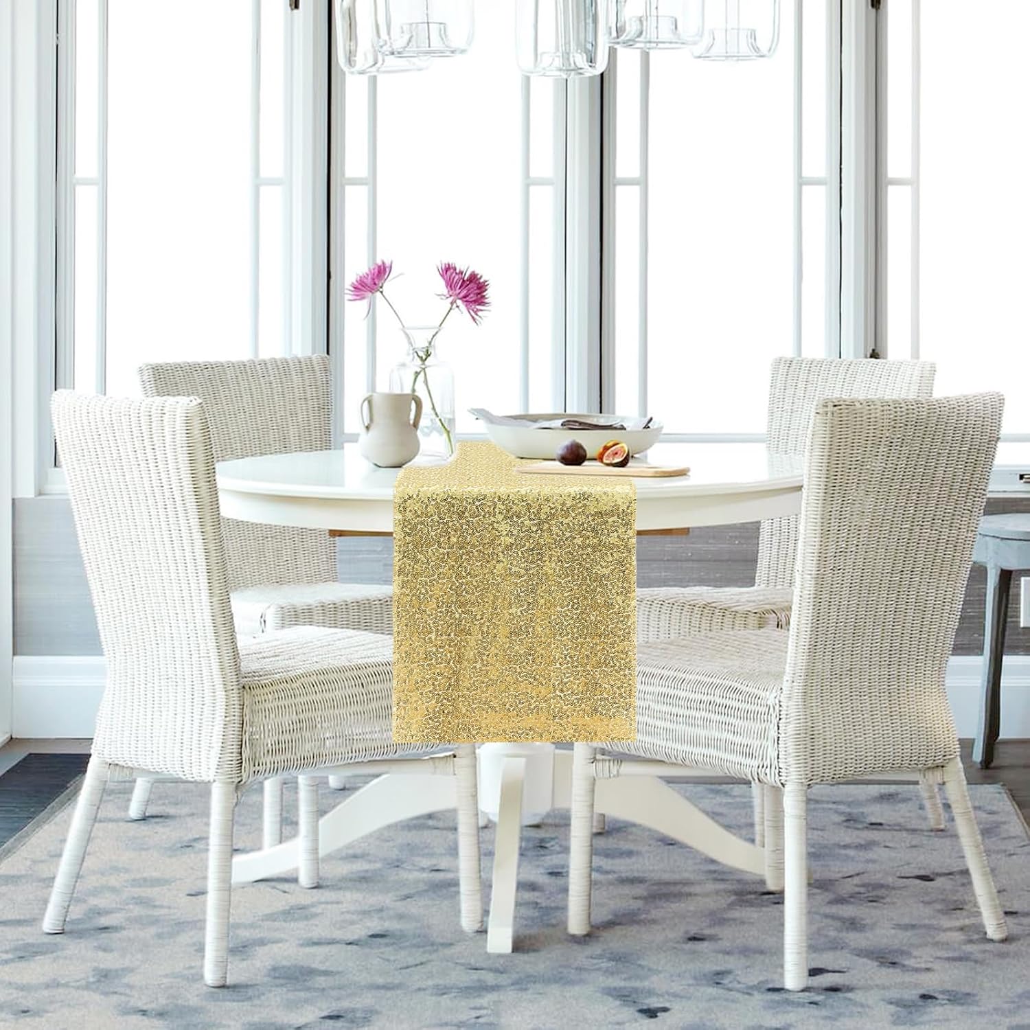 10 Packs 12 x 72 inches Sequin Table Runner, Gold Glitter Table Runner for Birthday Party Supplies Wedding Engagement Baby Shower Holiday Celebration Event Decorations