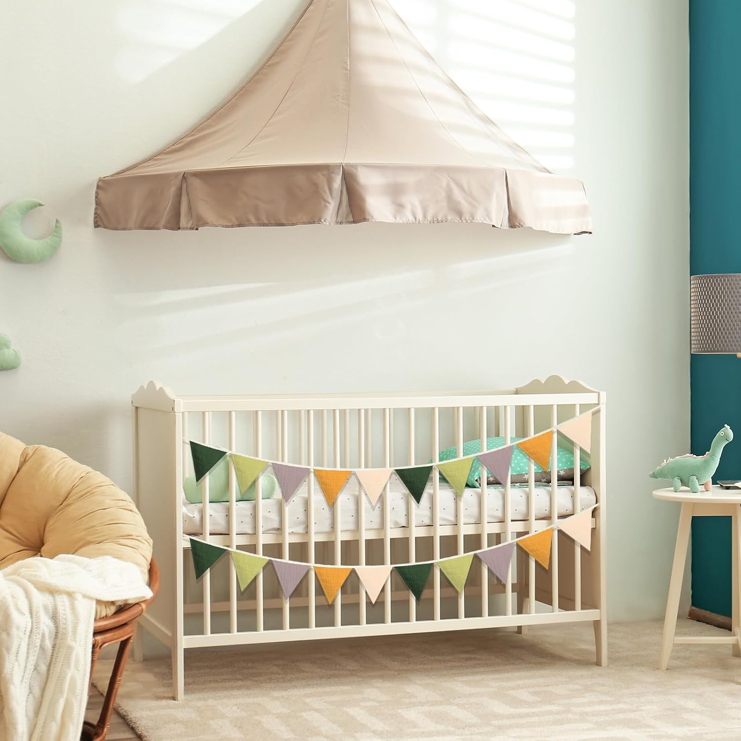 Oudain 15.5 ft Pennant Banner Flags, 2 Pcs Nursery Garland Triangle Bunting Flag Baby Banner for Nursery Decor Baby Birthday Boho Wedding Shower Party Event, Each 7.75 ft(Green Color)