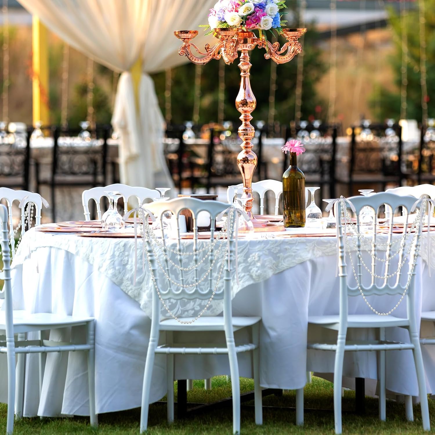 - Sufficient Quantity for Versatile Use: this package includes 16 wedding chair back garland sash with pre tied white bows, providing ample quantity for most applications; Whether you're decorating for a wedding, party, or special event, the large quantity allows for creative arrangements, such as pearl chair back garlands or beautiful centerpieces, ensuring your decor is visually appealing and eye catching