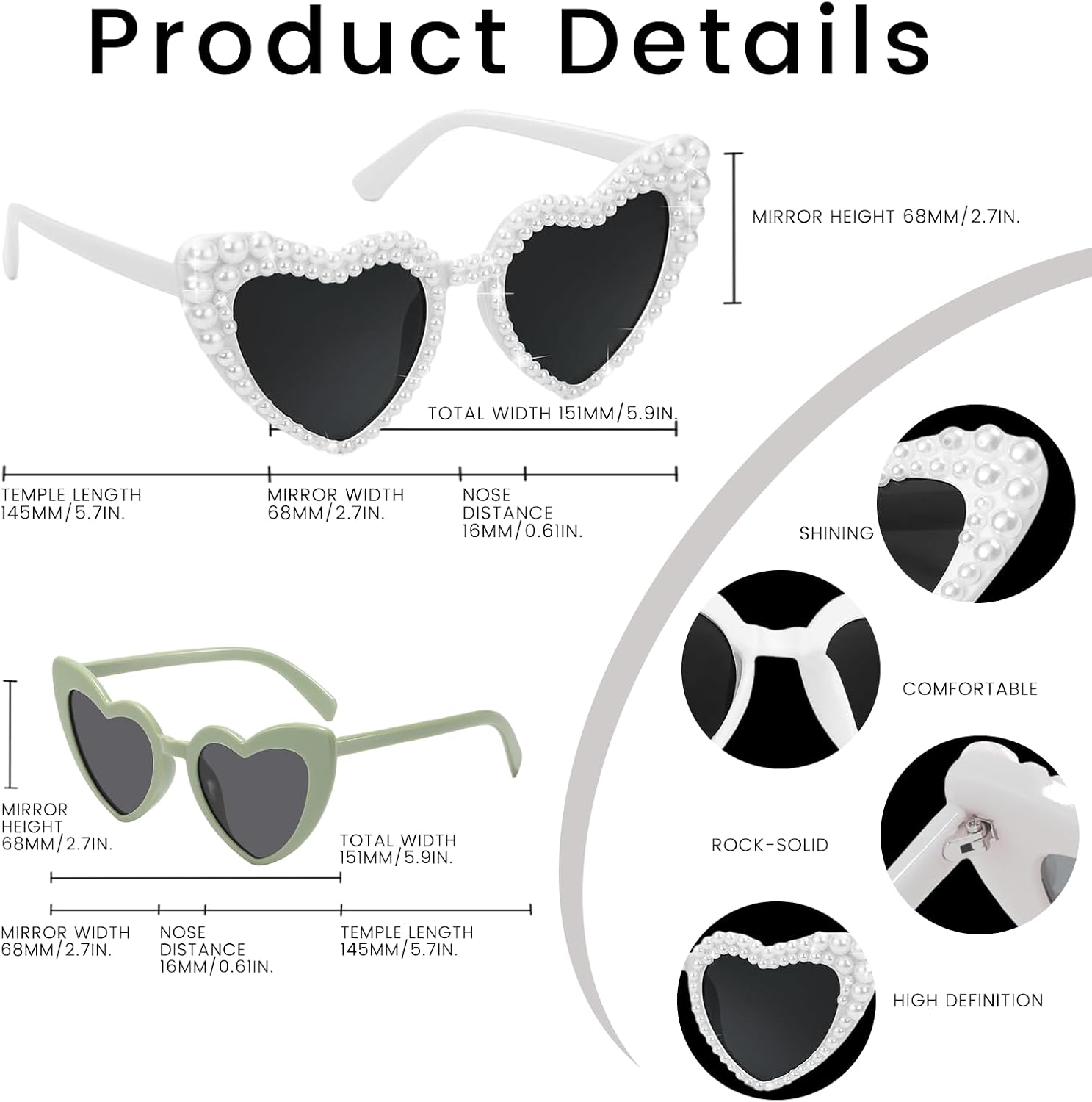 - Party Favors for Women: These pearl heart sunglasses are suitable for many occasions, not only as wedding sunglasses and bridal accessories for the bride, but also as a daily gift for teachers' day, Valentine's Day, boudoir's day, Mother’s Day, etc.